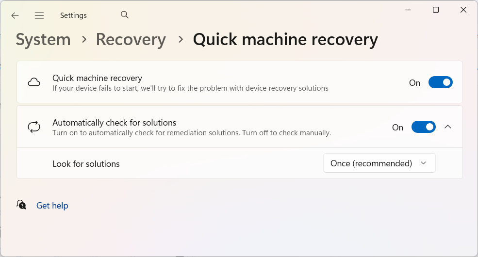อีกหนึ่งฟีเจอร์ใหม่ที่มีความสำคัญแต่ผู้ใช้ทั่วไปอาจไม่ค่อยสังเกตเห็น คือ Quick Machine Recovery (QMR) ซึ่งถูกออกแบบมาเพื่อรับมือกับปัญหาระดับระบบ โดยเฉพาะกรณีที่การอัปเดตเกิดความผิดพลาดจนทำให้เครื่องไม่สามารถบูตเข้าสู่ Windows ได้ตามปกติ