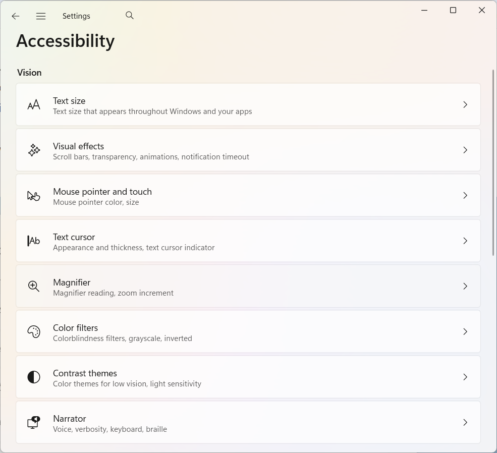 ด้านการเข้าถึงหรือ Accessibility ยังคงเป็นหนึ่งในพื้นที่ที่ Microsoft ให้ความสำคัญอย่างต่อเนื่อง โดย Windows 11 ในปี 2025 ได้รับการอัปเกรดฟีเจอร์หลักหลายรายการ ทั้ง Voice Access, Narrator และ Magnifier เพื่อช่วยให้ผู้ใช้สามารถเข้าถึงระบบปฏิบัติการได้สะดวกยิ่งขึ้น ไม่ว่าจะมีข้อจำกัดด้านร่างกายหรือการใช้งานในรูปแบบใดก็ตาม