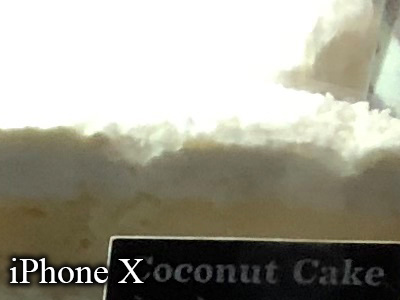 - iPhone X – รูปนี้เราจะดูกันที่ Dynamic Range เป็นหลักนะครับ จะเห็นว่ารายละเอียดบนเค๊กหายไปเกือบหมด ได้ 4 คะแนน