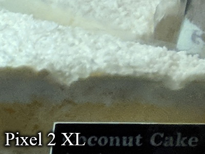- Google Pixel 2 XL – สามารถเก็บรายละเอียดบนหน้าเค๊กได้ครบ แต่ก็ยังไม่สามารถเก็บรายละเอียดของครีมเค๊กทางซ้ายได้ (ดูภาพเต็ม) แต่ก็ถือว่าทำได้ดีที่สุด ได้ 4.7 คะแนน