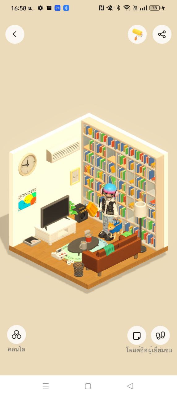 - เมื่อสร้างตัวละครเสร็จ สามารถตกแต่งห้องพักของตัวเองได้ต่อ และสิ่งที่น่ารักในเกมนี้คือเมื่อมีคนมาเยี่ยมชมบ้านของเรา ยังสามารถแปะโพสอิสฝากข้อความให้เราได้ด้วย