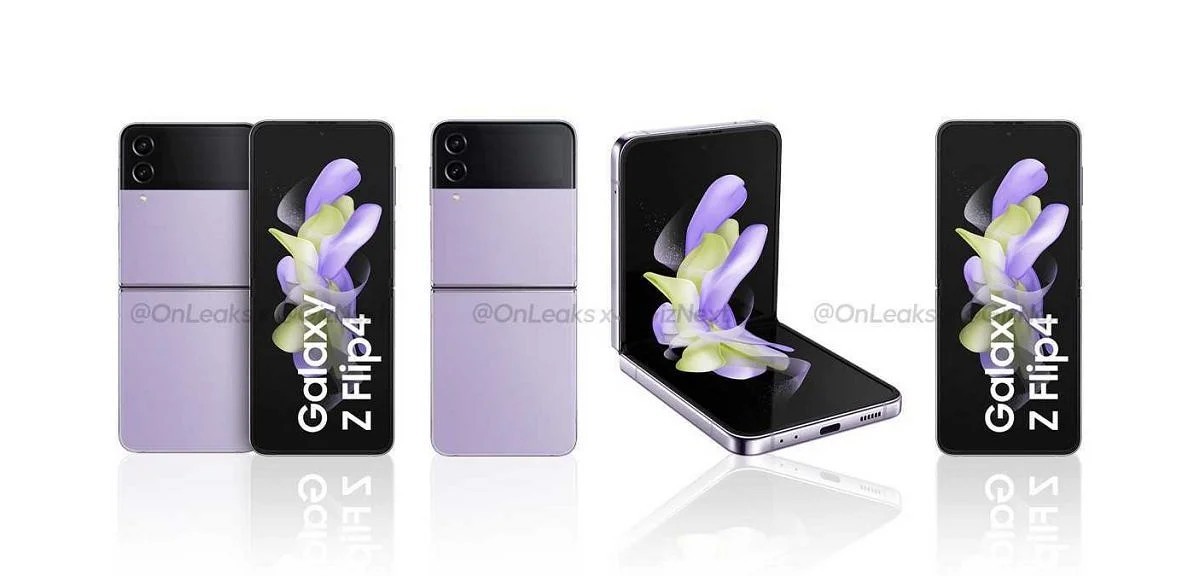พร้อมกันนี้ยังมีภาพเรนเดอร์มือถือ Galaxy Z Flip4 เซ็ตใหม่หลุดออกมาให้แฟน ๆ ได้ชมกันแล้ว จะมีทั้งหมด 4 สี คือ Graphite, Pink Gold, Bora Purple และ Blue เอาจริง ๆ คือตอนนี้ก็แทบจะไม่เหลืออะไรให้หลุดกันแล้ว เพราะสเปคก็มาเกือบหมดทั้ง ชิปเซ็ต Snapdragon 8+ Gen 1, RAM สูงสุด 8GB พื้นที่เก็บข้อมูลสูงสุด 512GB, หน้าจอด้านในแบบ AMOLED ขนาด 6.7 นิ้ว ความละเอียด FHD+ รีเฟรชเรต 120Hz ส่วนจอนอกจะเป็น AMOLED ขนาด 2.1 นิ้ว, กล้องคู่ด้านหลังความละเอียด 12MP, กล้องหน้าความละเอียด 10MP, แบตเตอรี่อาจจะมีขนาด 3,400 mAh หรือ 3,700 mAh รองรับชาร์จไวแบบมีสาย 25W และไร้สาย 10W