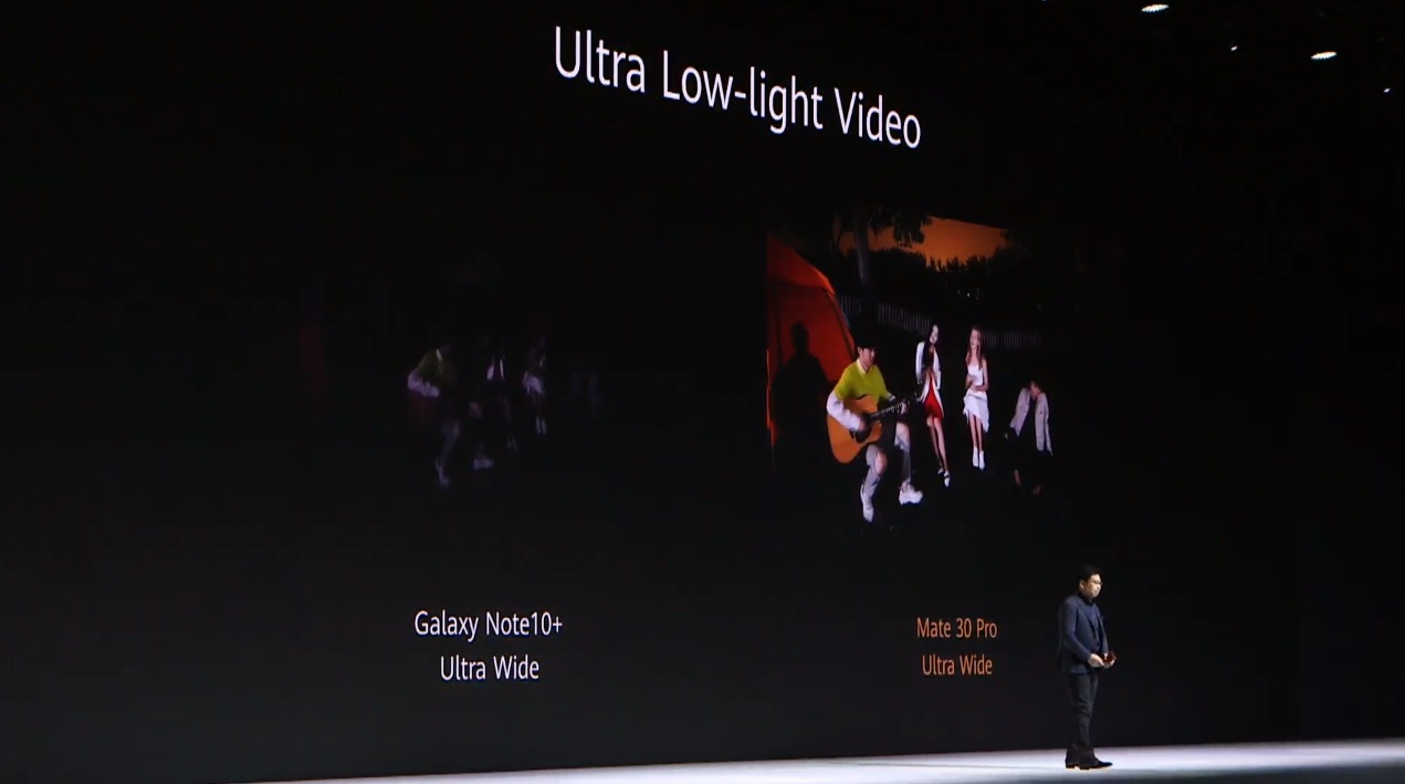 เป็นกล้องมือถือตัวแรกของที่สามารถถ่ายวิดีโอบนความละเอียดกล้อง 40MP ได้ ซึ่งรองรับการถ่ายสูงสุด 4K 60 fps พร้อมกันสั่นแบบ Dual OIS + AIS ในตัว ดัน ISO ได้ถึง 51200 เปลี่ยนกลางคืนเป็นกลางวันได้สบายๆ แถมรองรับการถ่าย Ultra Slow-Motion ที่ 7680 fps อีกด้วย เรียกว่าถ่ายวิดีโอตอนกระสุนวิ่งออกจากกระบอกปืนได้เห็นๆ เลย (มีใน Mate 30 Pro เท่านั้น)