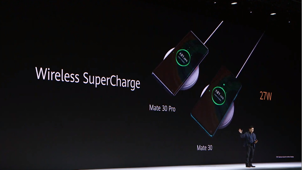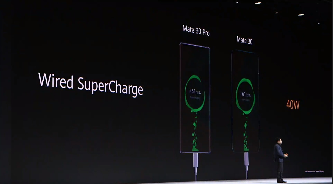 สำหรับ Mate 30 และ Mate 30 Pro ทั้งสองรุ่นรองรับการชาร์จแบบมีสาย SuperCharge สูงสุดถึง 40W และไร้สายได้สูงสุด 27W ด้วยกัน ชาร์จแปปเดียวเต็ม นอกจากนี้ยังสามารถชาร์จแบบไร้สายให้กับอุปกรณ์อื่นเร็วกว่าเดิม 3 เท่าอีกด้วย