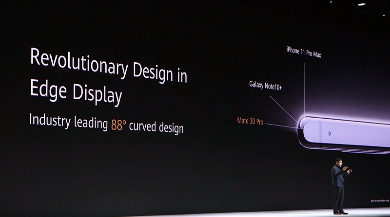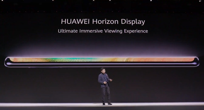 สำหรับจอ Horizon Display นั้นจะมีเฉพาะ Huawei Mate 30 Pro ซึ่งถือกลายเป็นมือถือที่ไร้ขอบจอด้านข้าง แถมไร้ปุ่มเพิ่มเสียงลดเสียง และปุ่มปลดล็อคหน้าจอ โดยฟังก์ชันปุ่มเหล่านั้นจะย้ายมาอยู่ที่ส่วนโค้งๆ ของจอ ใช้งานเป็นแบบสัมผัสแทน ทำให้เราสามารถเพิ่มเสียงและลดเสียงได้ทั้งด้านซ้ายและด้านขวา นอกจากนี้ขอบจอด้านบนก็ขนาดบางแค่ 4 มม. เท่านั้น เรียกได้ว่าแทบจะไม่มีขอบกันเลยทีเดียว