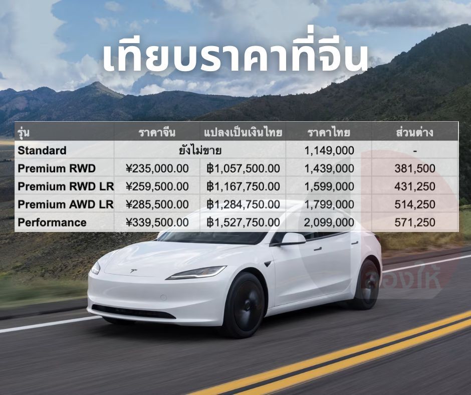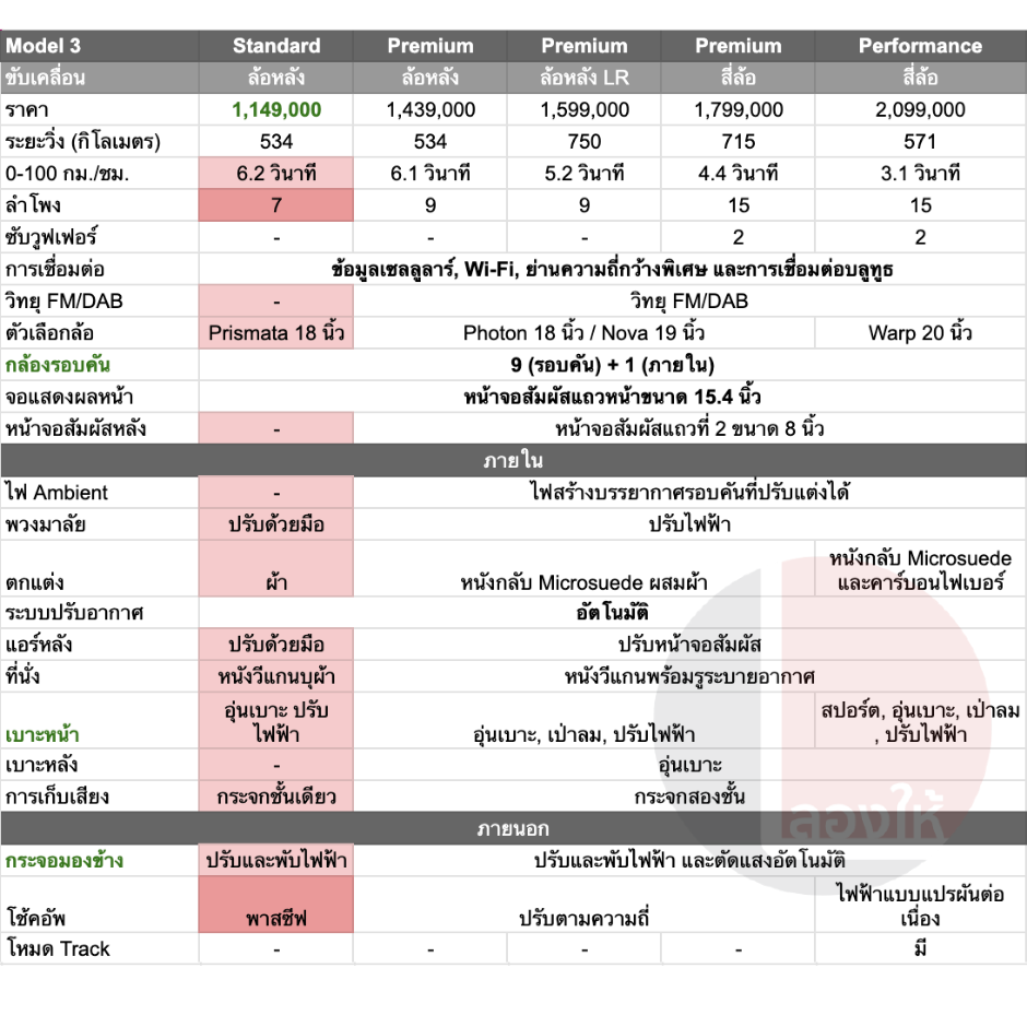 - เปรียบเทียบ Tesla Model 3 ประเทศไทย