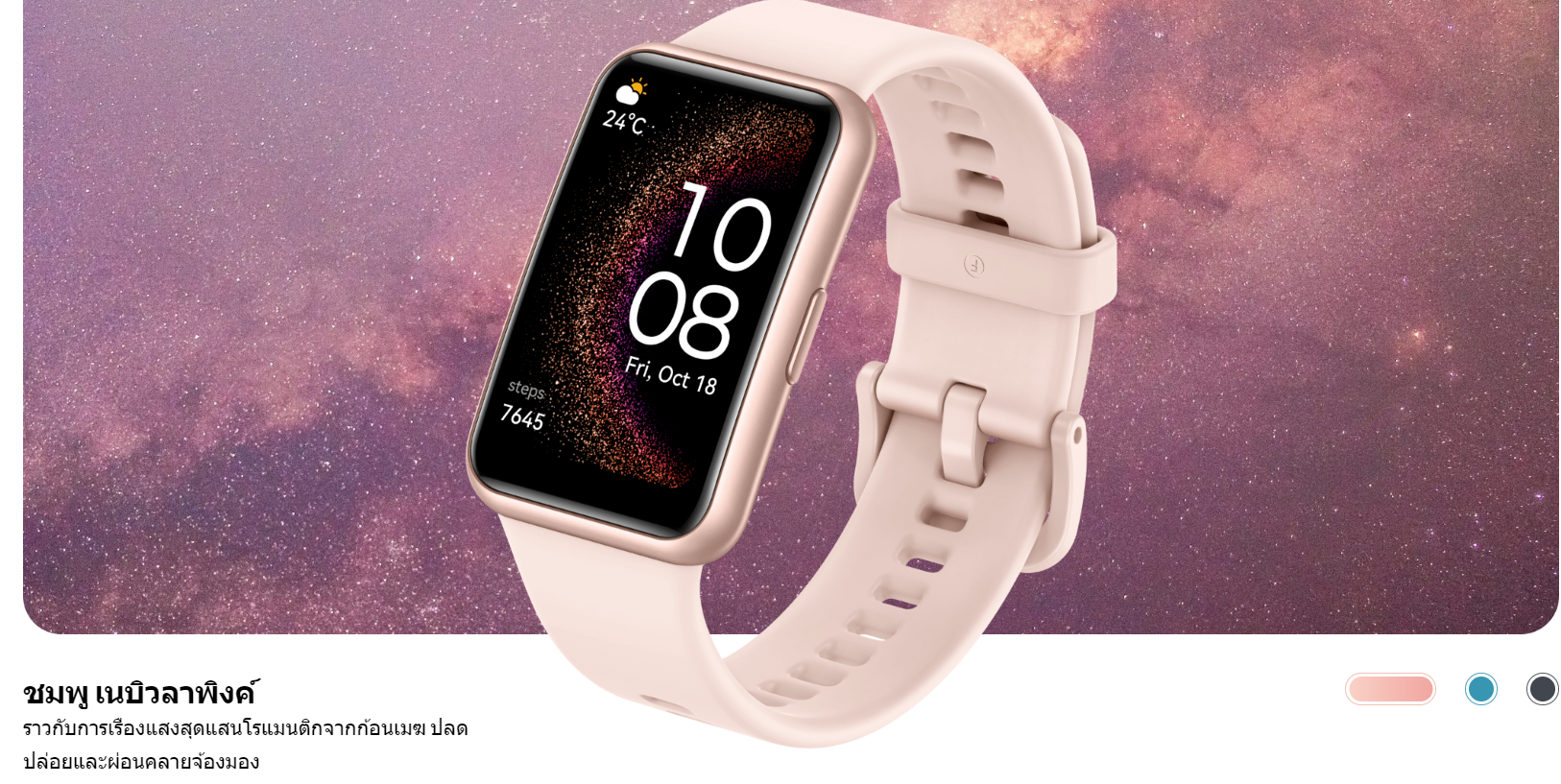 HUAWEI WATCH FIT Special Edition มาพร้อมจอ AMOLED ขนาด 1.64 นิ้ว ความละเอียด HD น้ำใหญ่เต็มตาไม่ต้องเพ่ง หนักเพียง 21 กรัม บางเพียง 10.7 มม. มีให้เลือกด้วยกันทั้งหมด 3 สี ได้แก่ ชมพู เนบิวลาพิงค์, ดำ สตารี่แบล็ค และ เขียว ฟอเรสต์กรีน