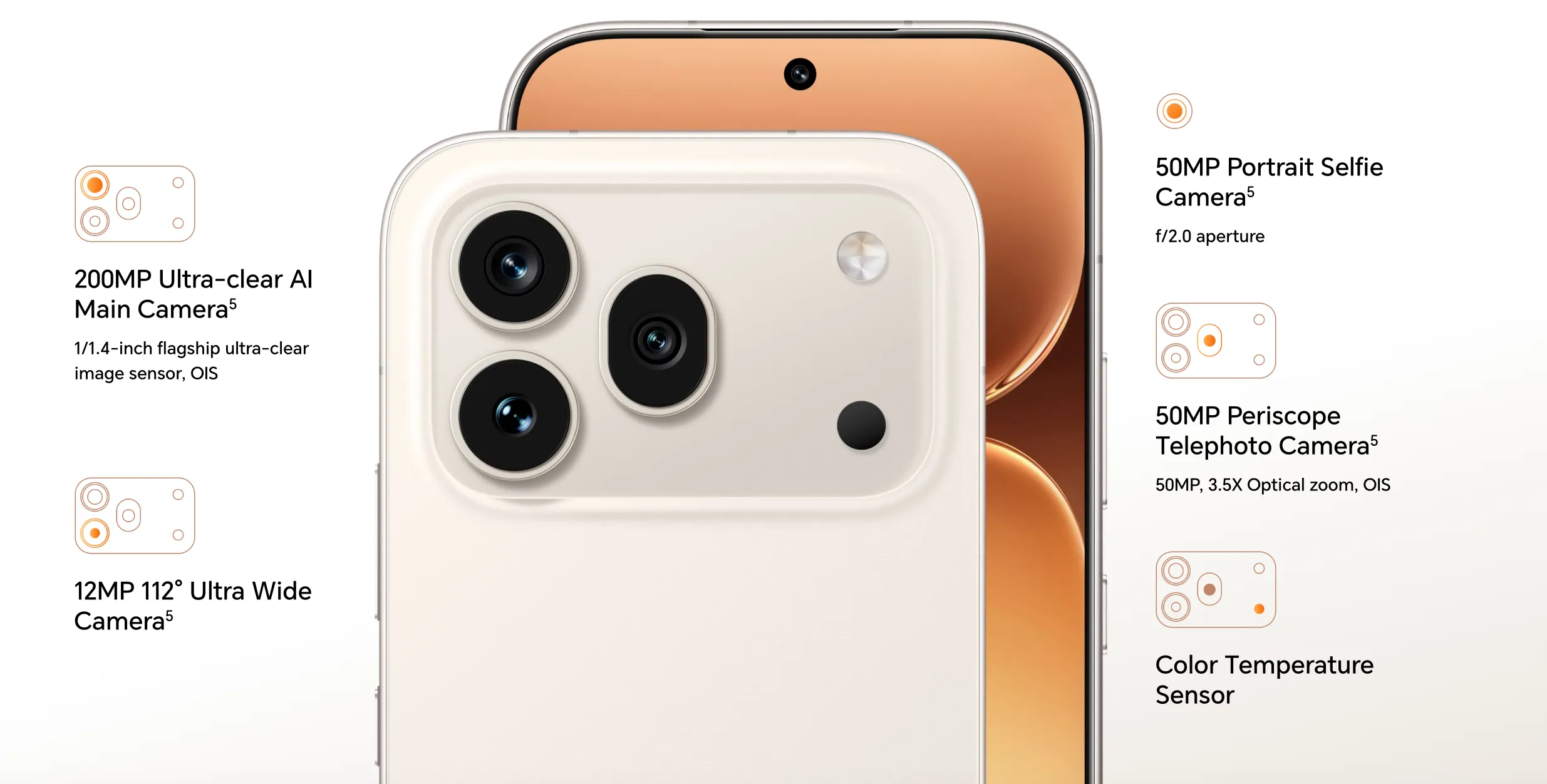 จุดเด่นอย่างแรกของ HONOR 600 Pro และ HONOR 600 ก็คือ กล้องหลัก Ultra-clear Night ความละเอียด 200MP เซนเซอร์ขนาด 1/1.4 นิ้ว ระบบกันสั่น OIS กล้องอัลตราไวด์ 12MP มุมมองกว้าง 112° และกล้องหน้าความละเอียด 50MP
