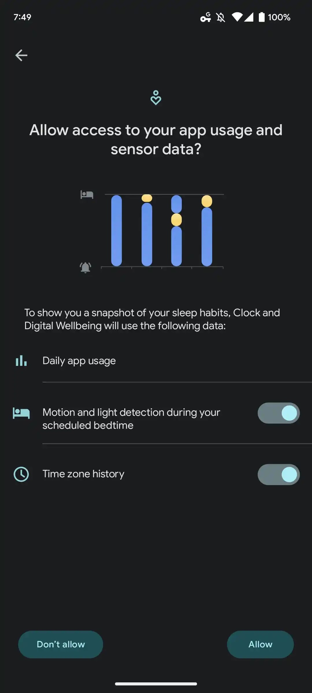 นอกจากนี้ Bedtime mode ยังใช้เซนเซอร์ต่าง ๆ ของมือถือในการตรวจจับความเคลื่อนไหวและแสงสว่างเพื่อดูด้วยว่าระหว่างเวลานอนเราได้ลุกออกไปฉี่ หรือจับมือถือขึ้นมาดูบ้างรึเปล่า
