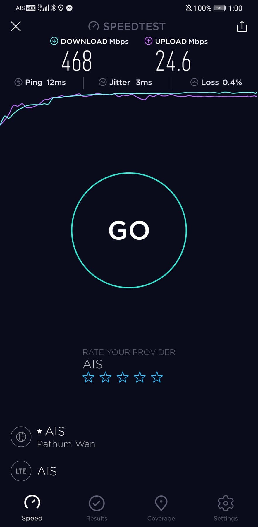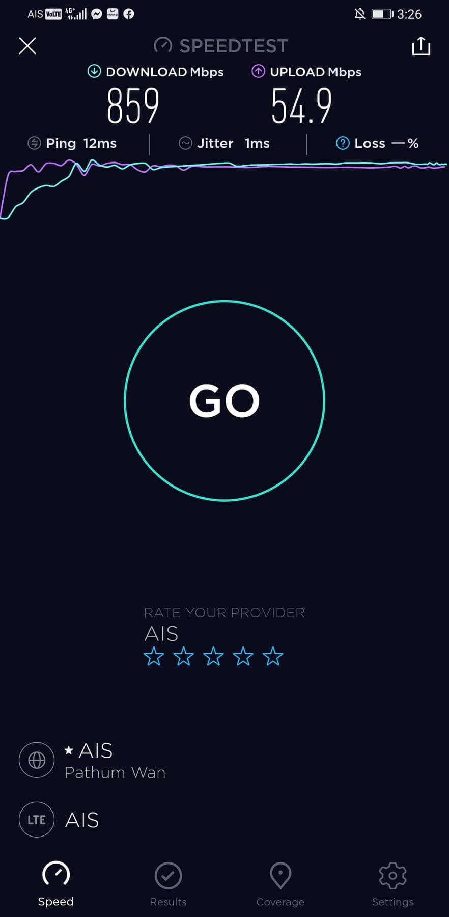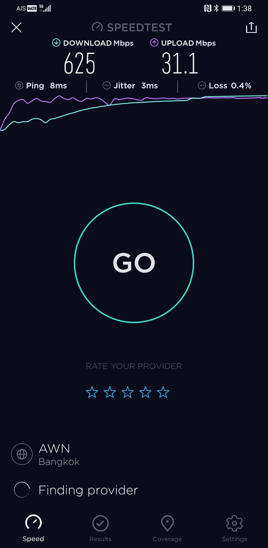 อย่าแปลกใจถ้าเห็นสัญลักษณ์ LTE เพราะตอนที่ทดสอบแอป Speedtest มันยังไม่อัพเดทให้รองรับ 5G เลยนั่นเอง