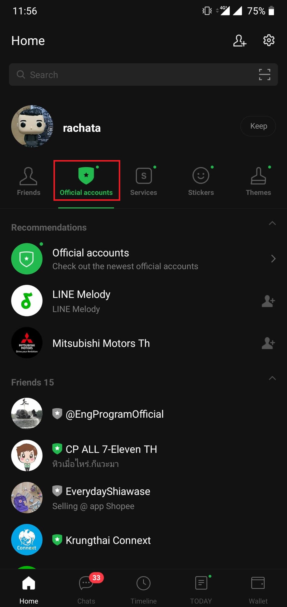 - จากนั้นเลือกแท็บ Home -> Official Accounts
