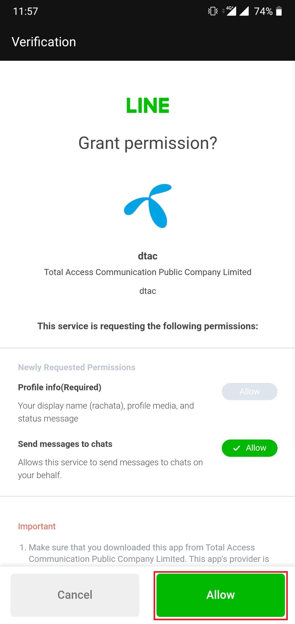 - กด Allow เพื่อยอมรับข้อตกลง