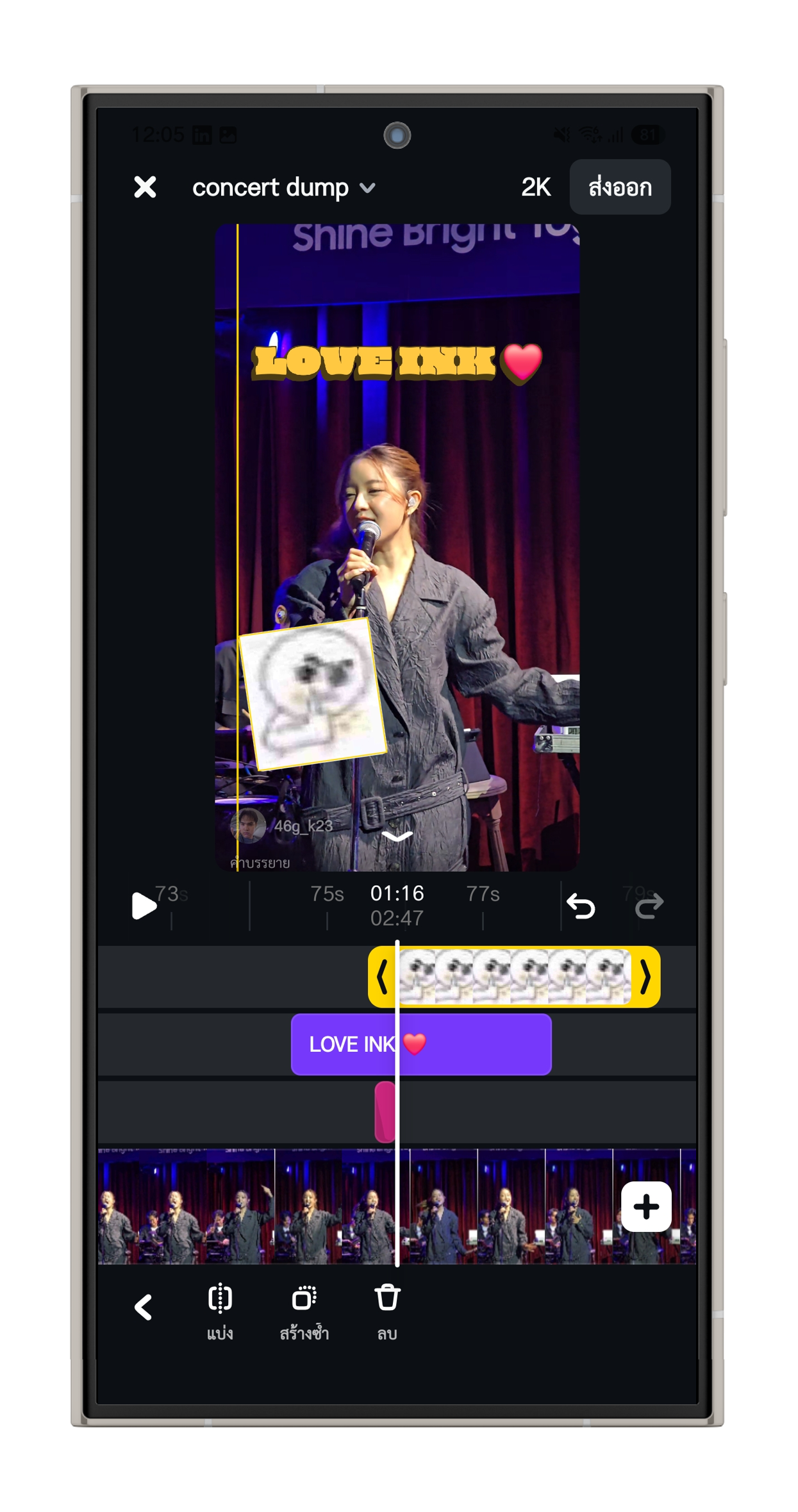 - คัตเอาต์และสติกเกอร์ : แทรกวิดี แล้วเลือกวัตถุหรือบุคคลที่ต้องการไดคัต จากนั้น Edits จะทำการแทรคกิ้งพร้อมตัดฉากหลังให้อัตโนมัติ เพื่อนำไปซ้อนทับเลเยอร์ลงบนวิดีโอหลัก
