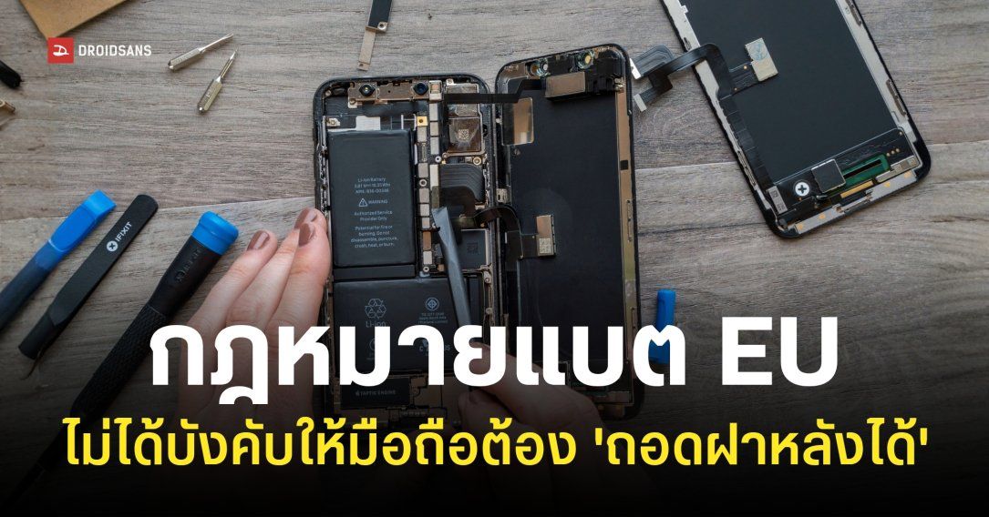 ช่วงที่ผ่านมามีกระแสข่าวว่า EU ออกกฎหมายให้สมาร์ตโฟนต้องถอดและเปลี่ยนแบตได้ง่าย โดยมีผลบังคับใช้ปี 2027 เป็นต้นไป ซึ่งจริง ๆ แล้วไม่ได้หมายความว่า ‘มือถือต้องถอดฝาหลังเพื่อเปลี่ยนแบตได้’ ตามที่ใครหลาย ๆ คนเข้าใจ เพราะรายละเอียดหรือข้อยกเว้นมีมากกว่านั้น !