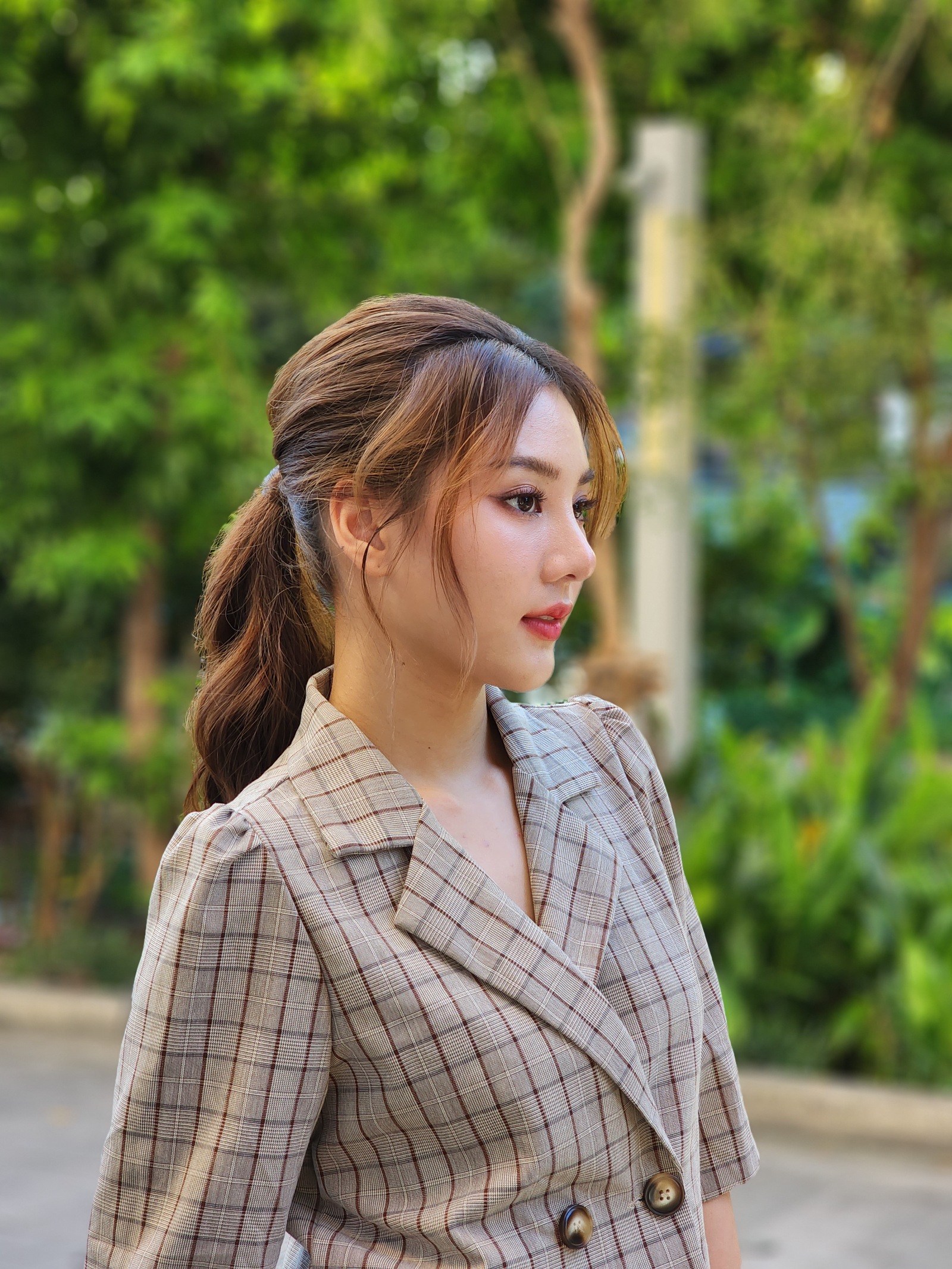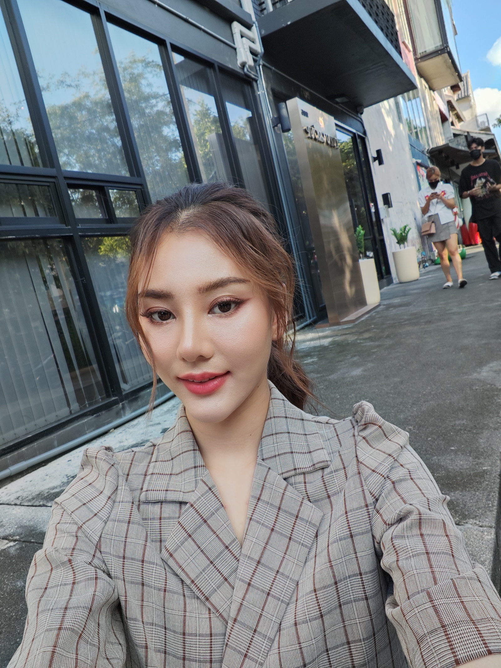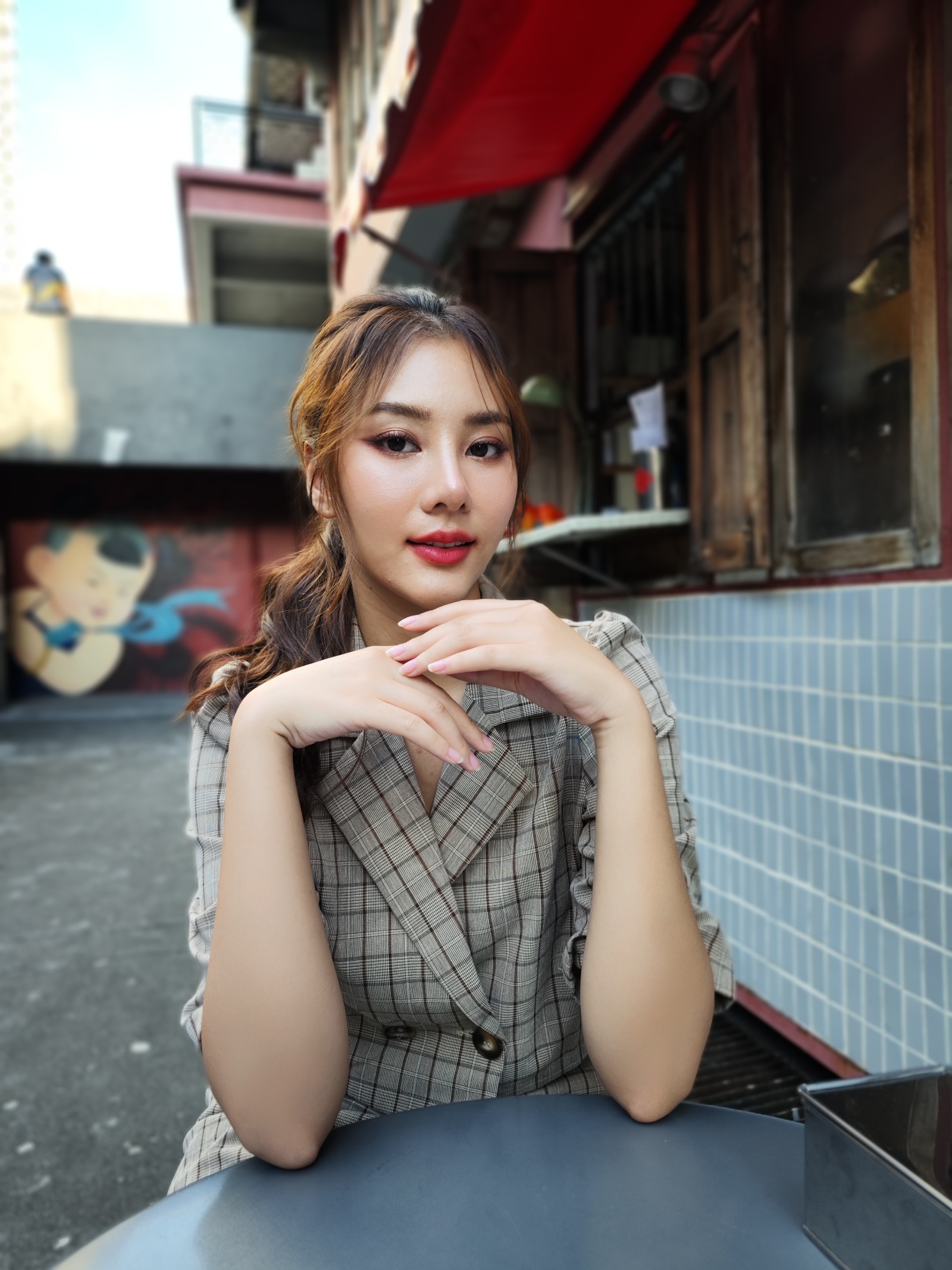 โหมด Portrait นี่คนก็น่าจะใช้บ่อยกันไม่น้อย เวลาอยากถ่ายภาพคนให้เด่นชัด มีพื้นหลังเบลอ ๆ ซีนนี้เป็นมุมเปิดประตูมาเจอแสงข้างนอก โดยยังมีพื้นหลังเป็นในห้องแสงน้อย แว๊บแรกเห็นความแตกต่างเป็นการแต่งหน้าจากระบบ ที่ vivo กับ Xiaomi นี้เกลี่ยนหน้าเนียนมาก ๆ รองลงมาเป็น Samsung และ OPPO ที่ปัดหน้าให้พอดี ๆ