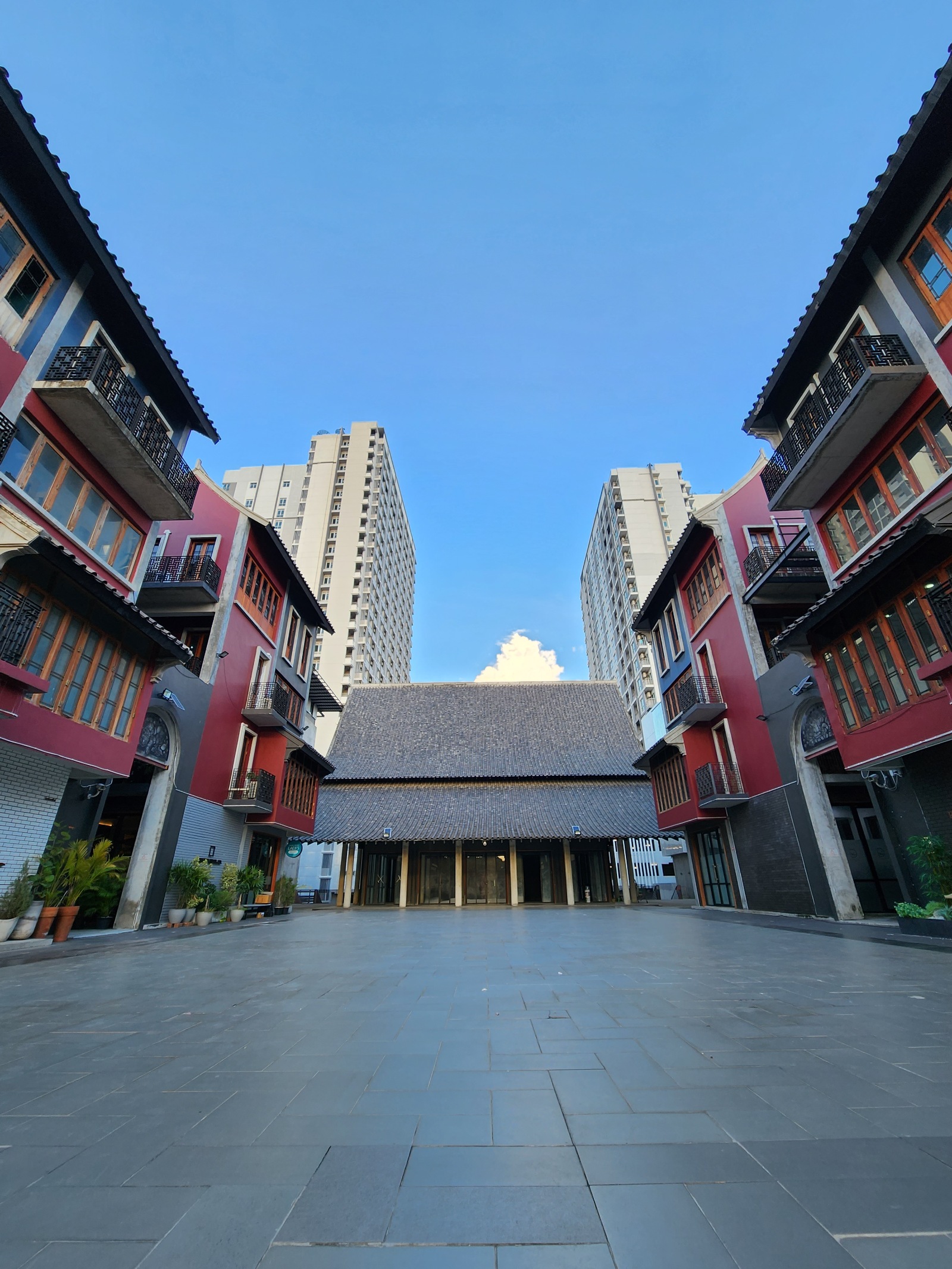 ลองมาดูสีสันตึกและท้องฟ้าจากเลนส์อัลตราไวด์ พบว่าแต่ละค่ายพาโทนไปคนละทางเลย ของ OPPO และ Samsung นี่ไปทางภาพสีสด ดึงให้ตึกออกมาดูสีแดงสว่าง แต่สีกระเบื้องพื้นต่างกัน อย่าง OPPO นี่พาดึงพื้นให้ขาวสว่างไปเลย ส่วนรุ่นที่เหลือนั้นปล่อยให้ตึกสีออกเข้ม ทาง Apple ชูสีส่วนต่าง ๆ น้อยที่สุด แต่ไปเด่นตรงท้องฟ้าที่มีสีน้ำเงินเข้ม ส่วนท้องฟ้าค่ายอื่นออกสีฟ้าเบา ๆ มากกว่า