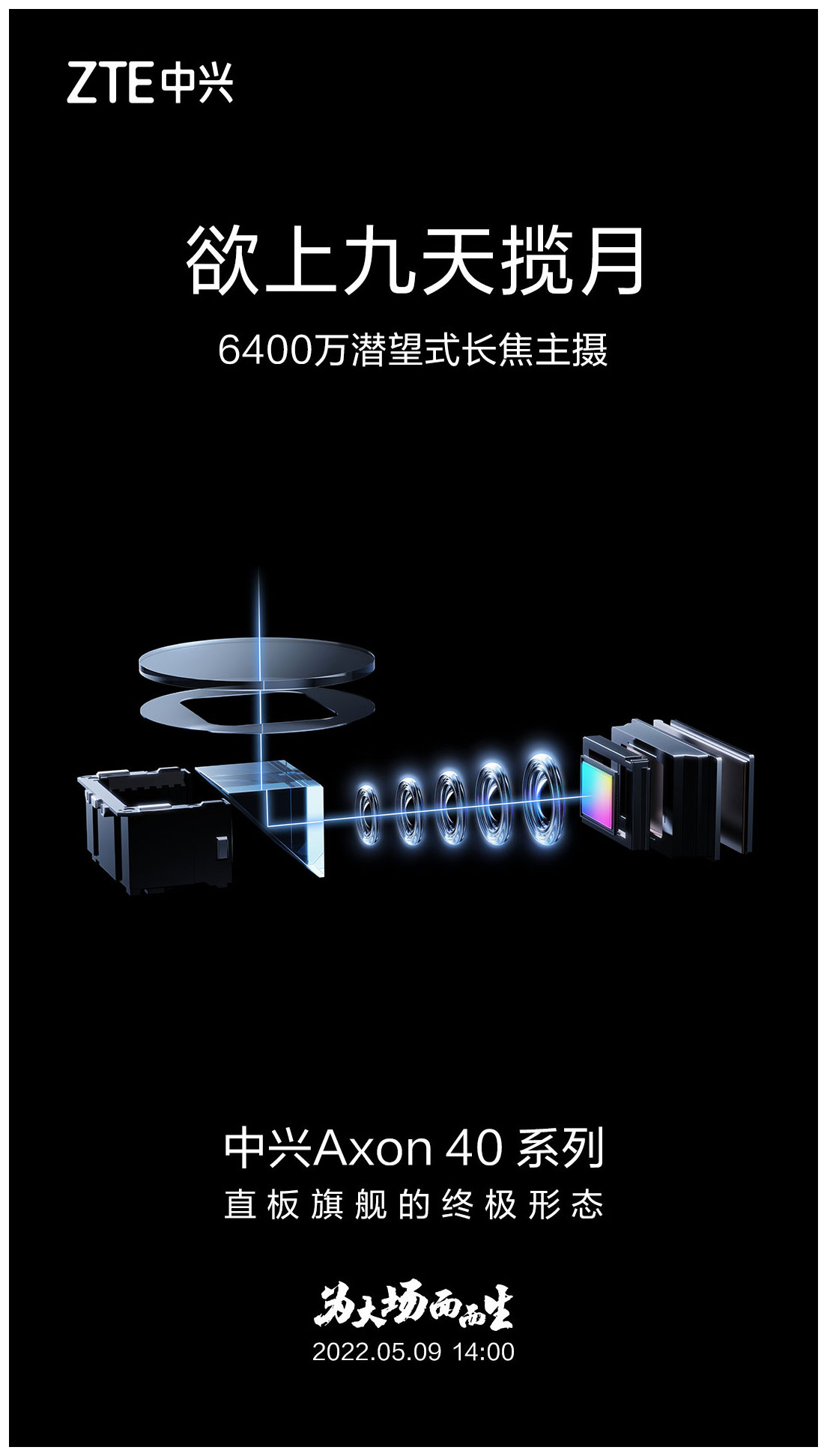 ZTE ยืนยันแล้ว Axon 40 Series จะเปิดตัวในจีนวันที่ 9 พฤษภาคม 13.00 น. ตามเวลาไทย มากับเทคโนโลยีกล้องกล้องเซลฟีใต้หน้าจอเหมือนเดิม พื้นที่การแสดงผลเหนือกล้องมีความหนาแน่นสูง 400PPI ใช้ชิป Snapdragon 8 Gen 1