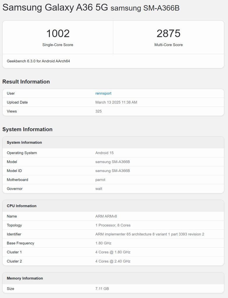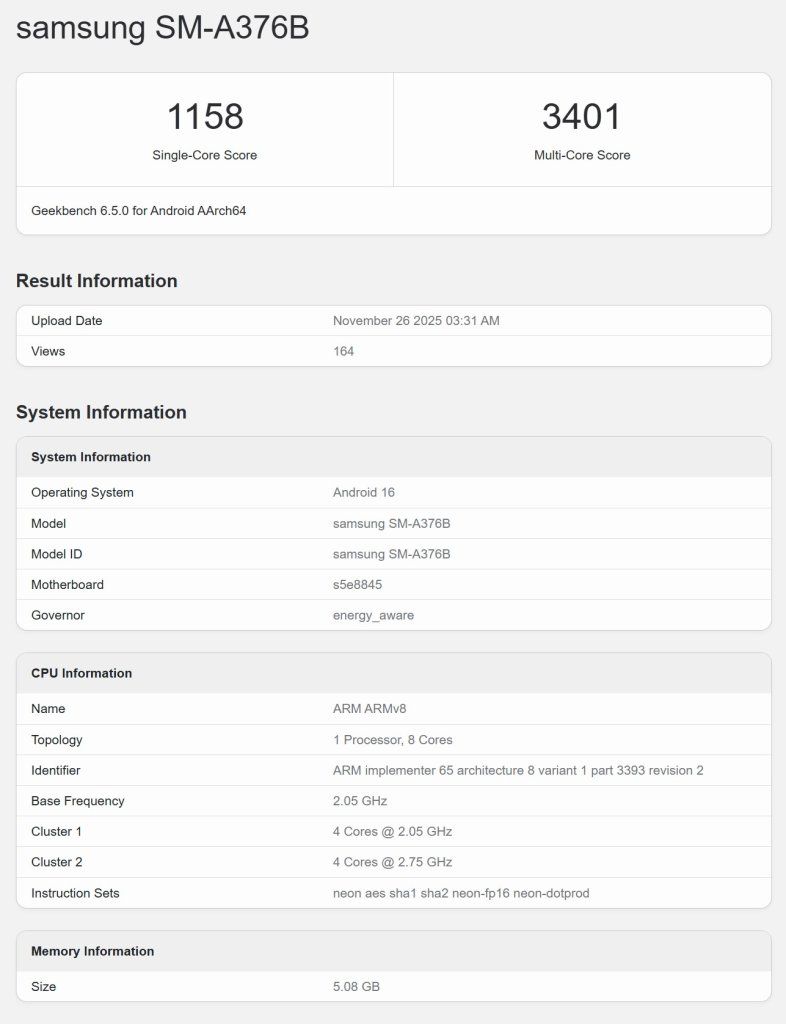 หลังจากการเปิดตัว Galaxy A36 มือถือรุ่นระดับกลางไปเมื่อเดือนมีนาคมที่ผ่านมา ล่าสุดบนฐานข้อมูลของ Geekbench ก็มีข้อมูลของ Galaxy A37 ปรากฏออกมา ว่าจะมากับ RAM 6GB และอยู่บนระบบปฏิบัติการ Android 16 พร้อมการเปลี่ยนแปลงสำคัญของชิปประมวลผล