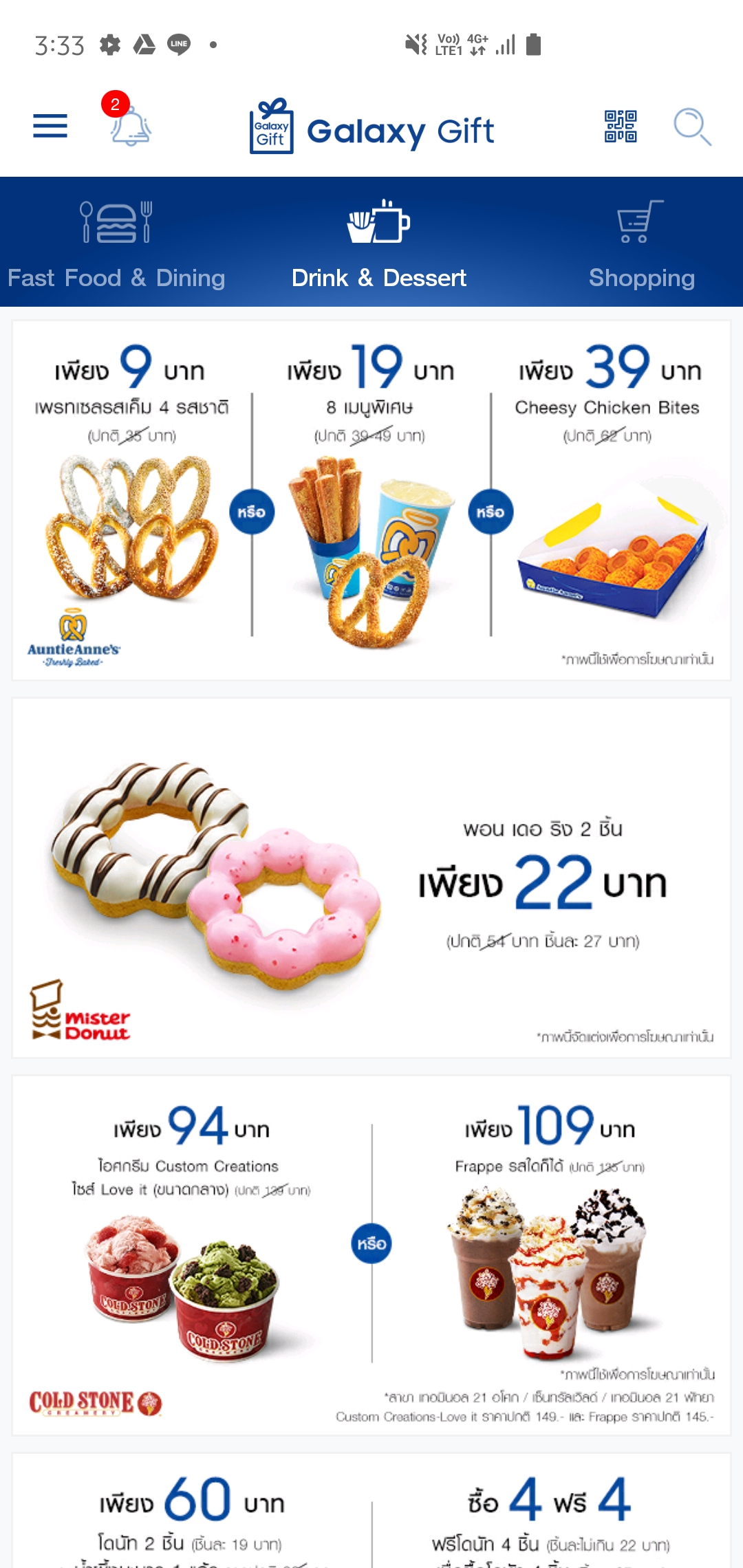 โดยหมวดหมู่ของบริการในปัจจุบันจะคงเหลือเพียง Hot Deal, Just for You, Fast Food & Dining, Drink & Dessert, และ Shopping เท่านั้น ซึ่งในตัวที่เริ่มมีอัพเดทก็จะเป็น Drink & Dessert ที่จะมีร้านค้าหน้าเดิมที่หลายคนชื่นชอบกลับเข้ามา ได้แก่