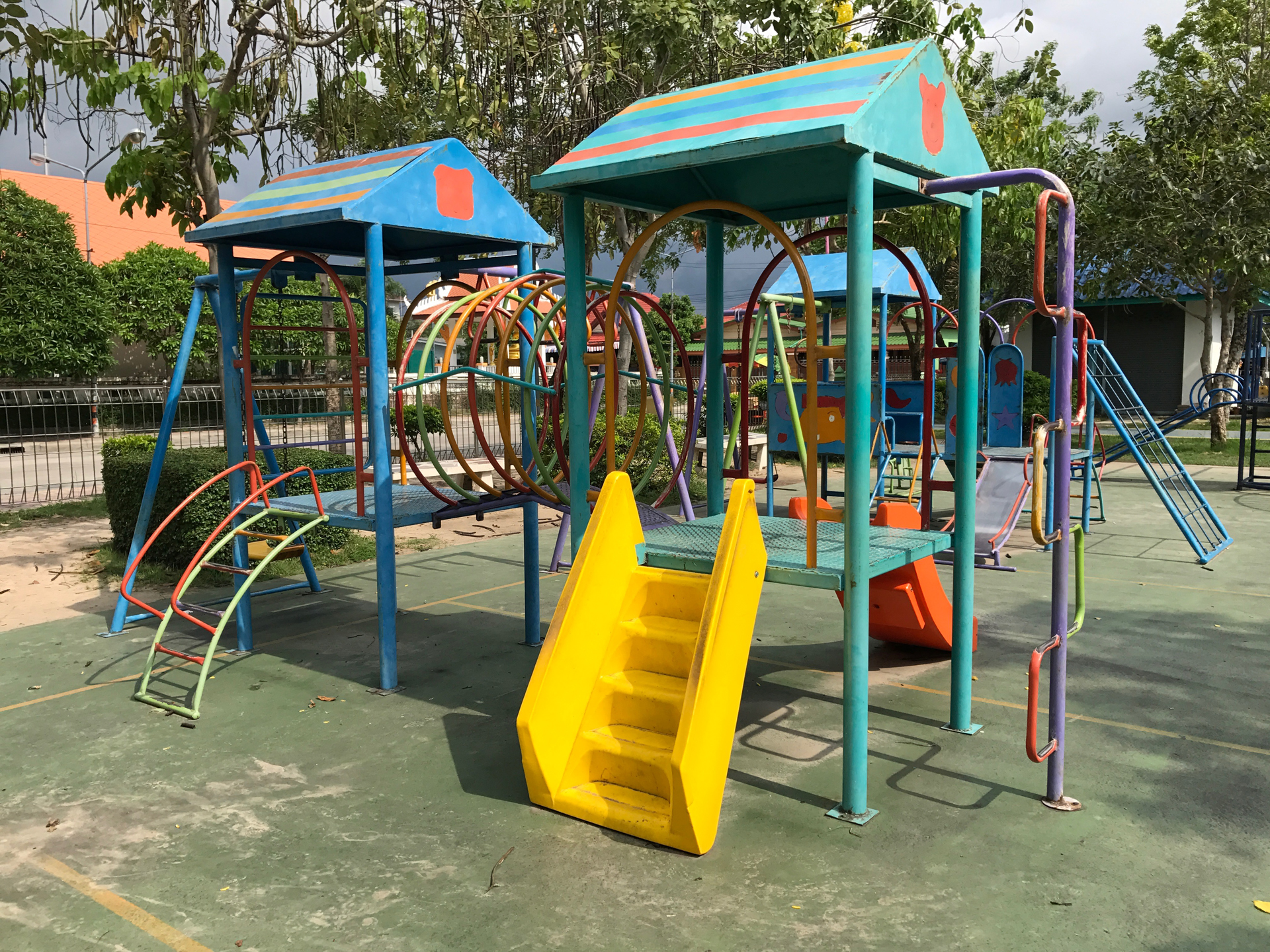 เป็นจุดสวนสาธารณะกลางแจ้ง ที่มีเครื่องเล่นสีๆเยอะดี มีแดดส่องเต็มที่ (แต่ฟ้าจะครื้มนิดๆเหมือนฝนจนจะตก สังเกตุได้จากสีท้องฟ้าในภาพ) ถ่ายออกมาให้เห็นกันชัดๆว่าสีเยอะๆแบบนี้แต่ละตัวจะถ่ายออกมาเป็นยังไง