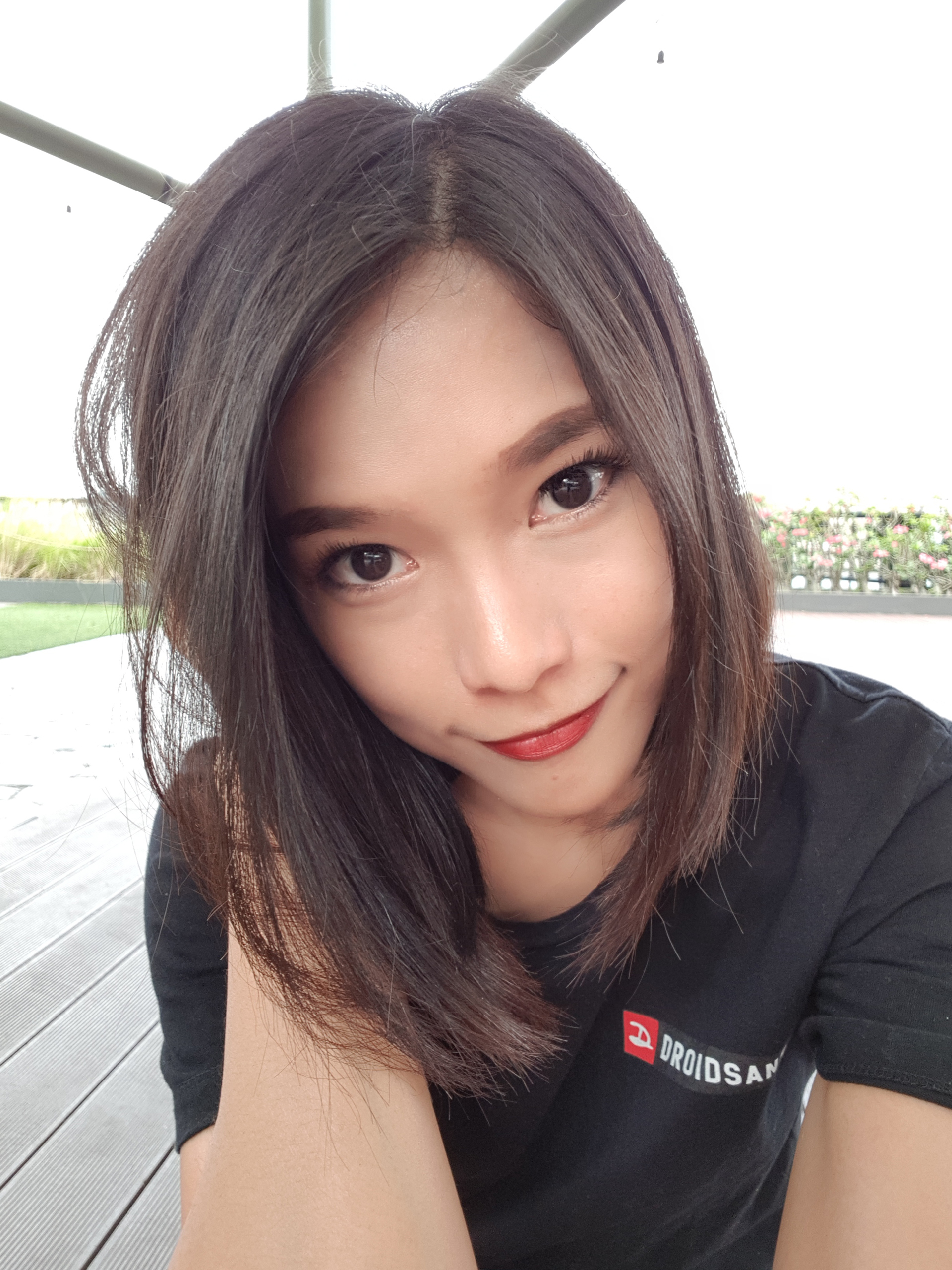 เปิดโหมดบิวตี้ที่ระดับกลาง ยกเว้น iPhone 7 ที่ไม่มีบิวตี้ให้ปรับ ภาพที่ออกมาจะค่อนข้างเรียลมากๆ แต่ก็เหมือนแอบใส่บิวตี้ให้บางๆ เซลฟี่ตจะค่อนข้างออกไปทางเหลืองนิดๆ ถัดมาเป็น Huawei P10 เปิดบิวตี้ที่ระดับกลาง จะเกลี่ยนหน้าเนียบแบบเบาๆไม่หลอกมาก กำลังดี แต่ยังคมน้อยกว่า Galaxy S8 ไปหน่อย ภาพหน้าคนจาก S8 เซลฟี่ดูธรรมชาติมากขึ้น หน้าดูไม่เบลอหลอกตา และค่อนข้างคมชัดออกไปโทนชมพูๆ ที่กลางแจ้ง