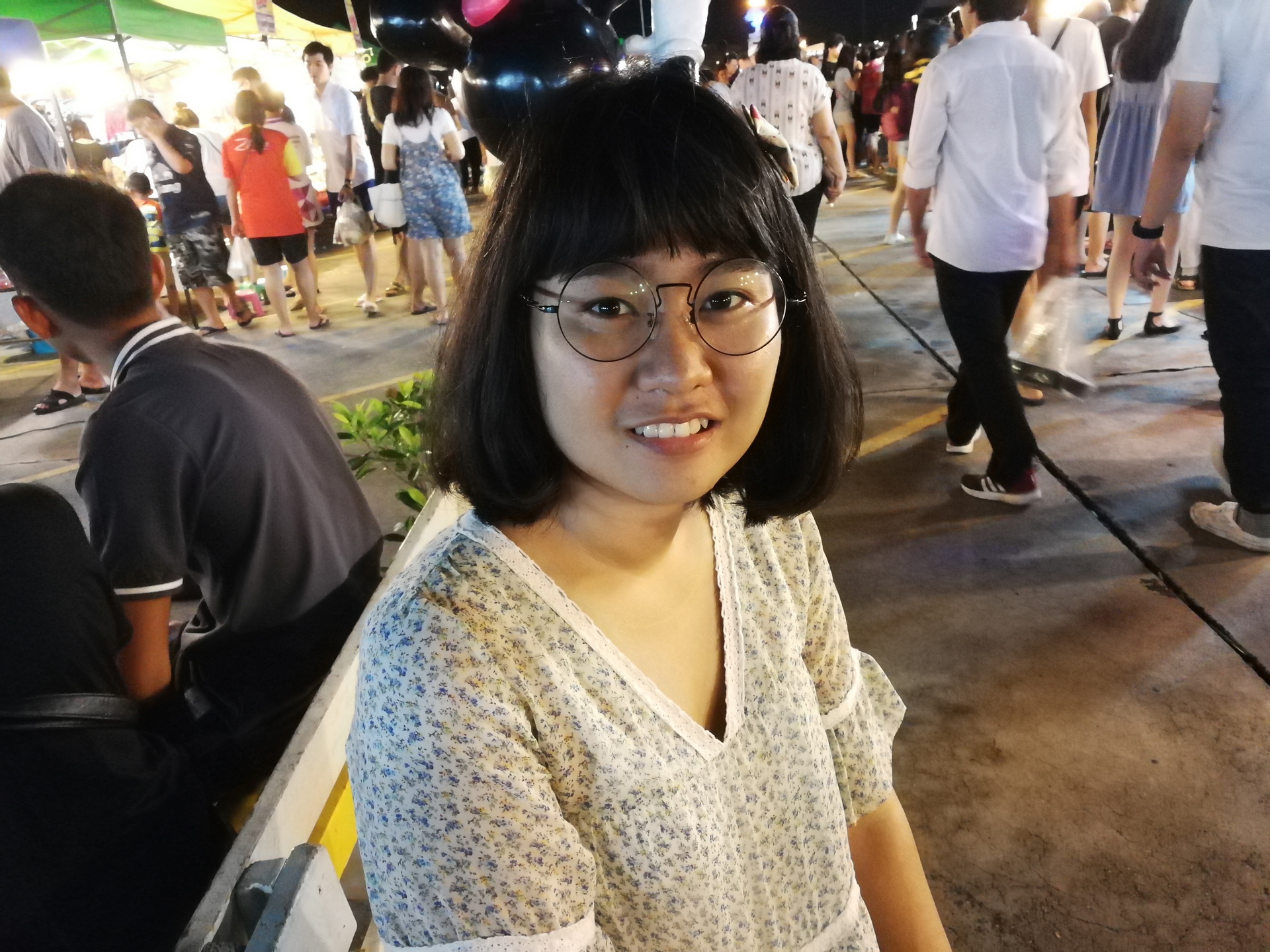 ถ่ายในตลาดนัดมีคนเดินตลอด แสงไฟก็มีจากตามทาง และร้านขายของค่ะถ่ายจากบนสะพานลอยกลางสี่แยก