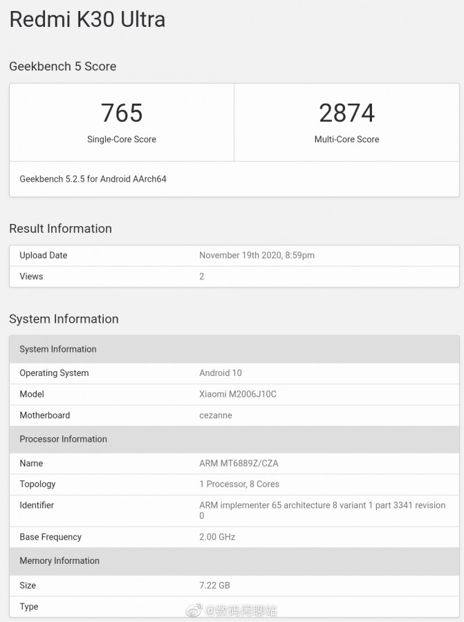สำหรับข้อมูลผลทดสอบชิป MT6893 ได้มาจากแหล่งข่าวจีนเจ้าเดิมอย่าง Digital Chat Station ได้ออกมาเปิดเผยผลทดสอบของ MediaTek MT6893 ด้วย GeekBench 5 ว่าสามารถทำคะแนน Single Core ได้สูงกว่าชิป MediaTek Dimensity 1000+ ที่อยู่ใน Redmi K30 Ultra และยิ่งไปกว่านั้นยังพบว่า MediaTek MT6893 สามารถทำคะแนน Single Core ออกมาที่ 886 คะแนน ส่วน Multi-Core ทำไปได้ต่ำกว่าเล็กน้อยที่ 2948 คะแนน ในขณะที่ Snapdragon 865 (ทดสอบใน OnePlus 8) ได้คะแนน Single-Core อยู่ที่ 886 คะแนนเท่ากัน ส่วน Multi-Core ได้มากกว่านิดหน่อยที่ 3104 คะแนน เรียกได้ว่าห่างกันเพียงเอื้อมมือจริงๆ ครับ