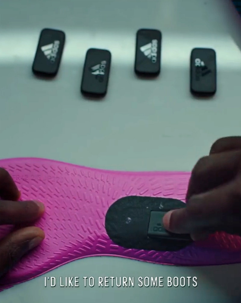 แต่รอบนี้อุปกรณ์ JACQAURD นั้นจะถูกนำไปใส่ไว้ในพื้นรองเท้าที่ออกแบบมาเป็นพิเศษโดยจะมีช่องให้ใส่อุปกรณ์ tracker ตัวนี้เข้าไปด้วย โดยคาดว่าจะนำไปเชื่อมกับแอป adidas GMR บนมือถือ Android และ iOS