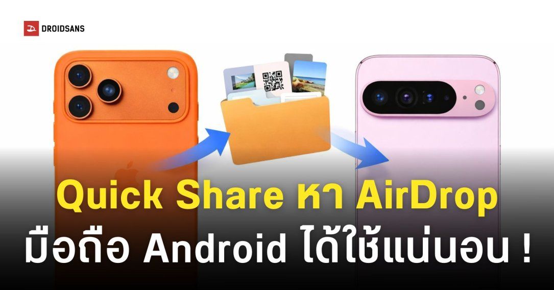 หลังจากประกาศอัปเดตฟีเจอร์ Quick Share ให้แชร์ไฟล์หา AirDrop ไปเมื่อเดือนพฤศจิกายนปีที่แล้ว Google ได้ออกมายืนยันแล้วว่ามือถือ Android รุ่นอื่น ๆ นอกเนหือจาก Pixel 10 Series จะได้รับการอัปเดตฟีเจอร์แชร์ไฟล์ร่วมกับอุปกรณ์ของ Apple ในเร็ว ๆ นี้