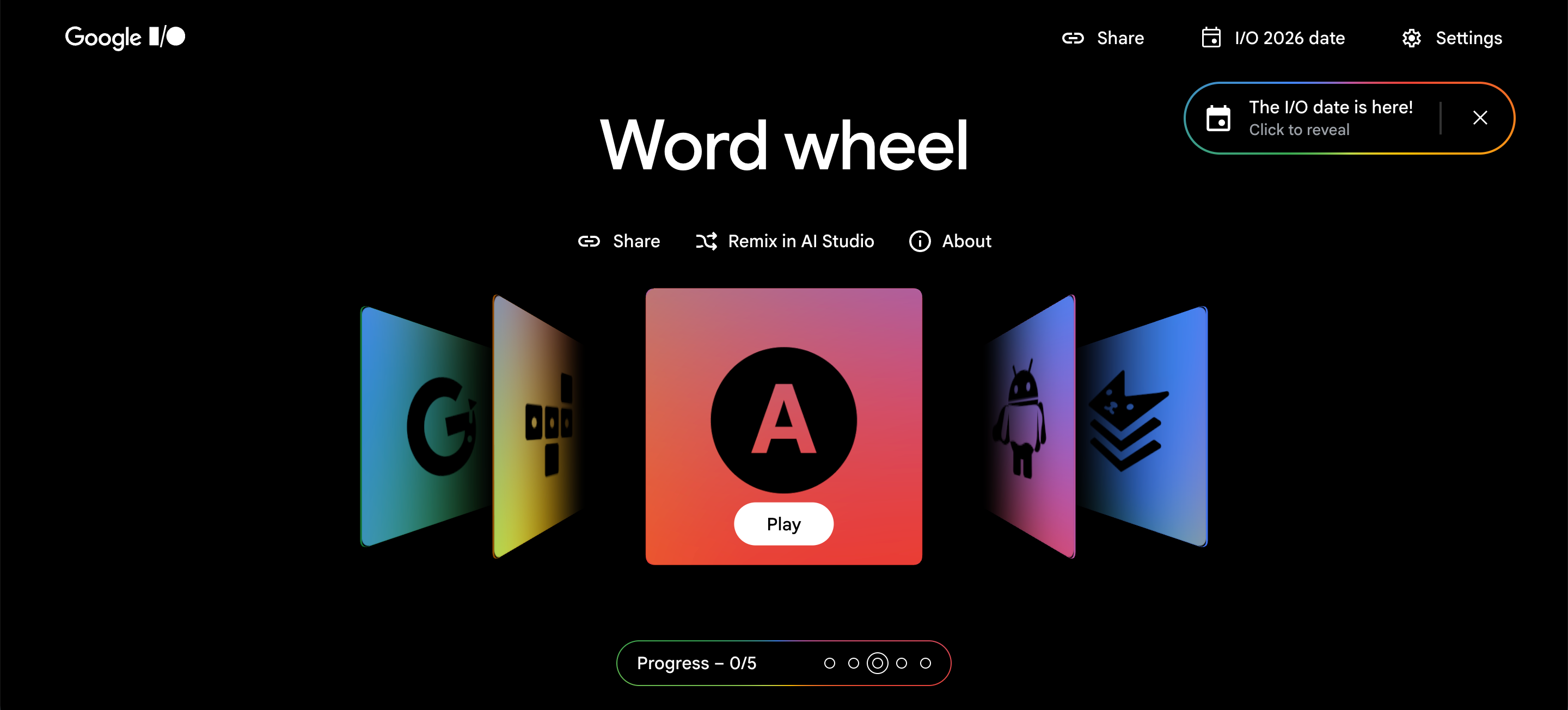 บนหน้าเว็บไซต์ io.google ได้มีมินิเกมให้เล่นสนุก ๆ ทั้งหมด 5 เกม ถ้าเกิดเล่นจบก็จะได้ข้อมูลวันจัดงานในช่วงท้ายด้วย (ทั้ง 5 เกมใช้เวลาเล่นไม่นาน)