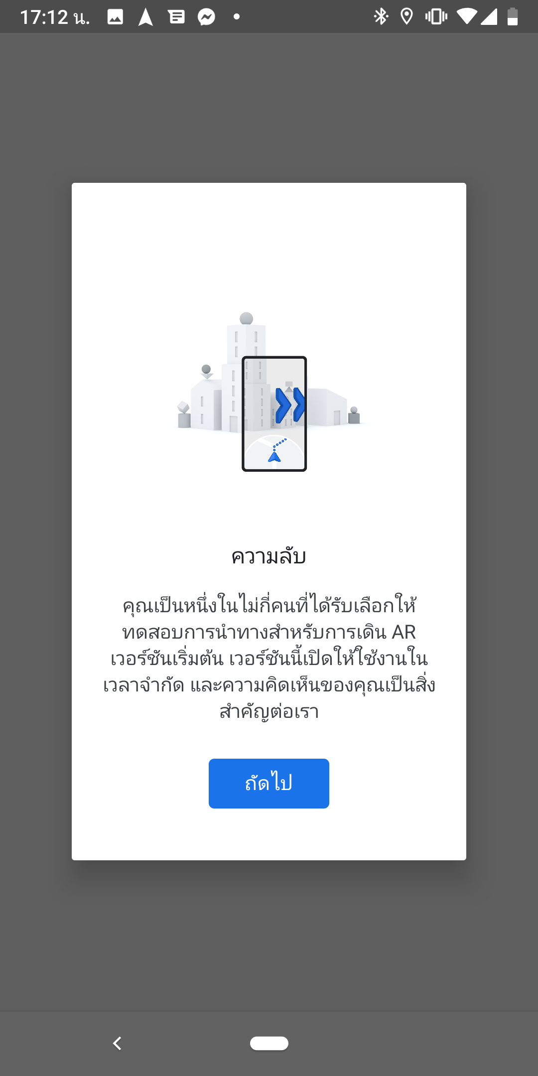 ผมก็ใช้ไม่ได้ ระดับ5แล้ว และเป็น samsung s9 plus android version 9 แล้ว พอเข้าเส้นทางไม่มีให้ขึ้น เริ่ม ARแบบในรูปเลย