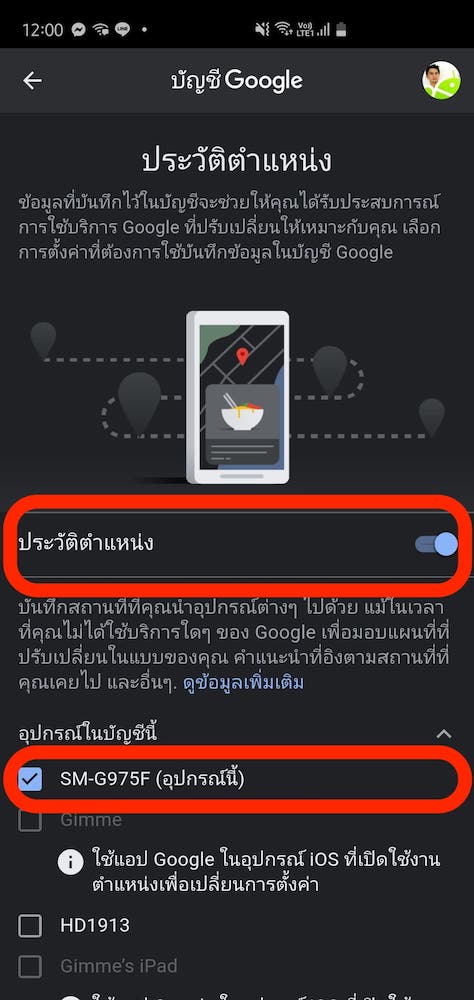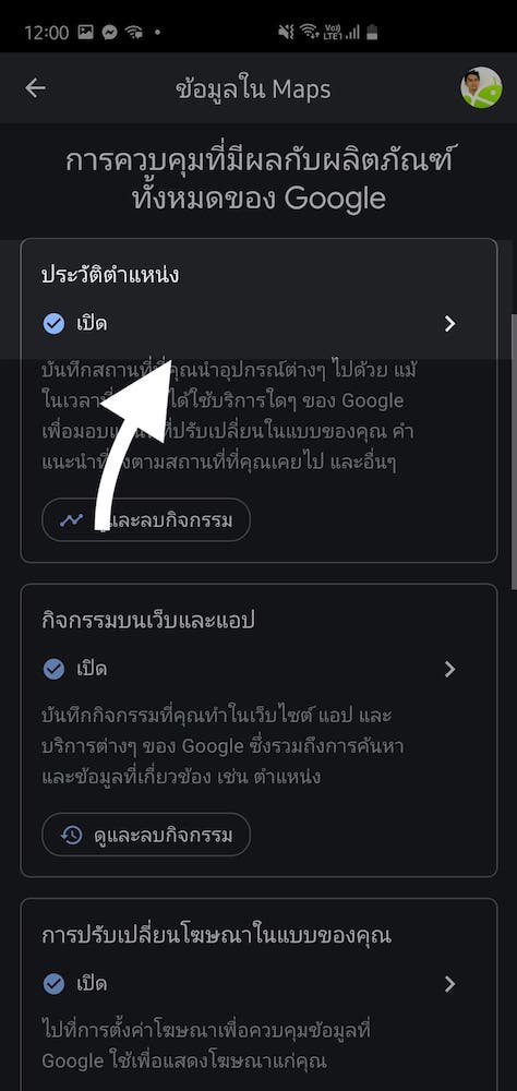 สำหรับบางคนฟีเจอร์นี้อาจจะถูกเปิดเอาไว้แล้วโดยไม่รู้ตัว แต่ถ้าของใครยังไม่เปิด ก็สามารถไปเลือกตั้งค่าเปิดได้ที่ในแอป Google Maps บนมือถือได้เลย โดยให้กดที่หน้าของเรา แล้วก็เลื่อนลงไปล่างสุดที่ Your data in Maps (ข้อมูลของคุณในแผนที่) แล้วก็เปิด Location History (ประวัติตำแหน่ง) ให้หมด