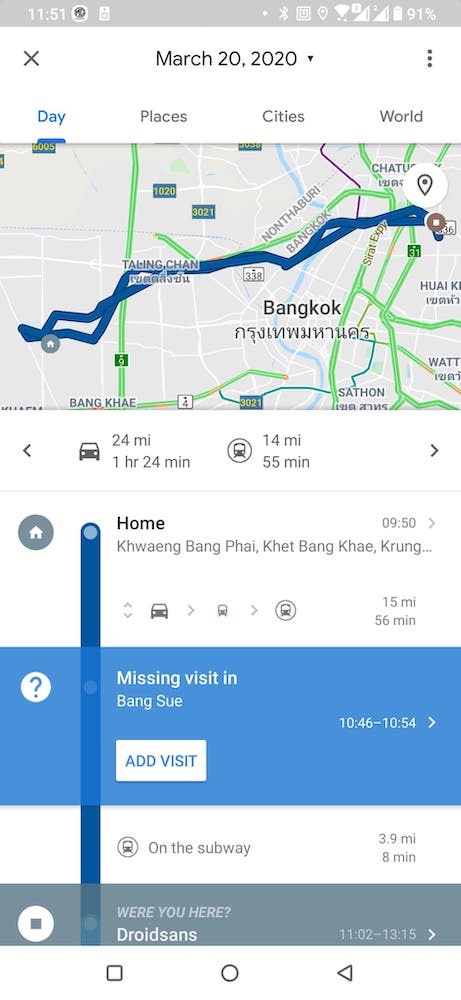 หลังจากนี้คุณเดินทางไปไหนมันก็จะจดจำให้แล้วโดยสามารถเรียกดูได้จาก ไทม์ไลน์ของคุณ (Timeline) ทั้งบน Browser หรือ App บน Android และ iOS เลย