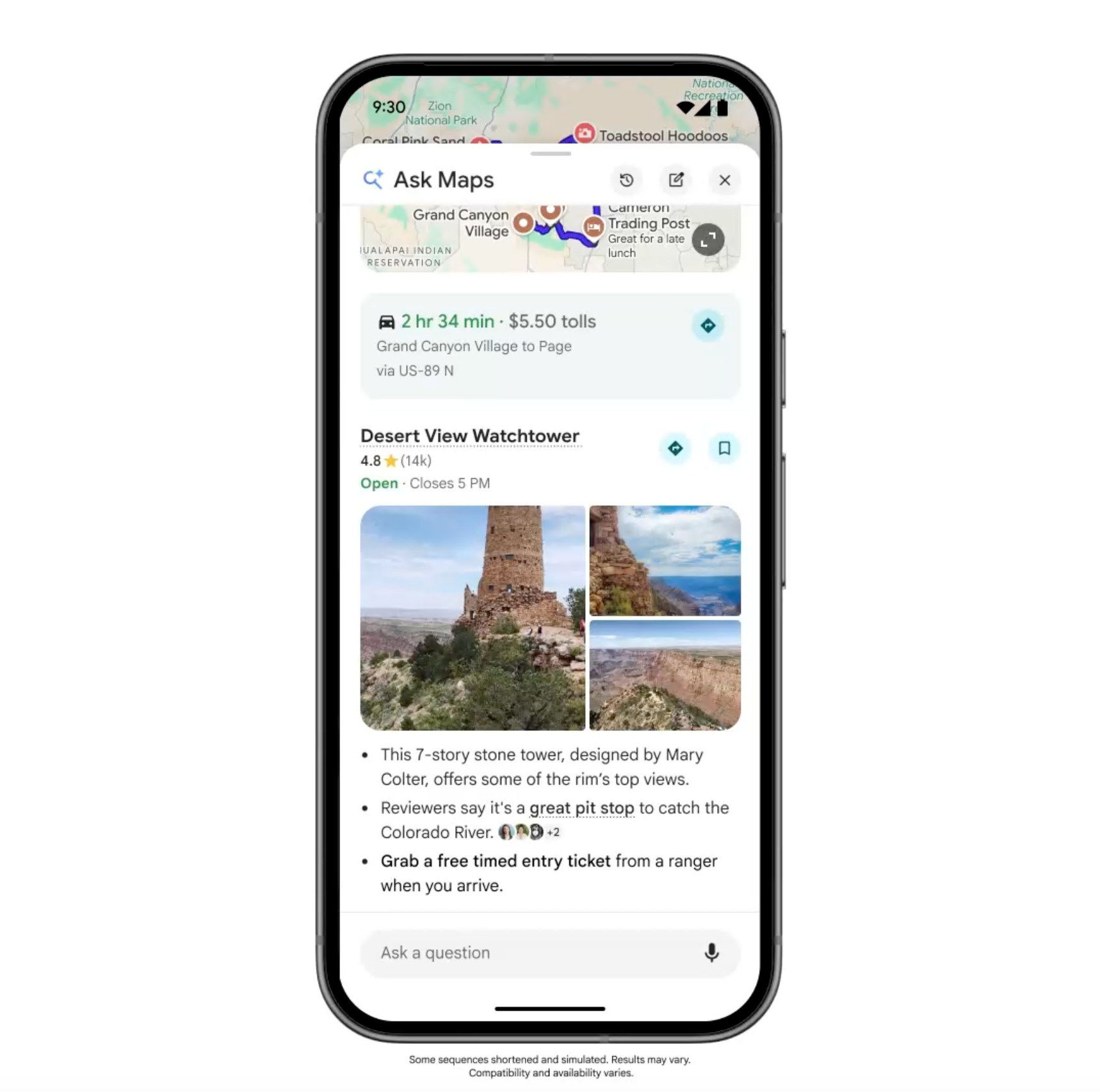 ฟีเจอร์ Ask Maps ช่วยให้ผู้ใช้สามารถสนทนาหรือโต้ตอบกับ AI เกี่ยวกับสถานที่ต่าง ๆ ได้ทันที โดยอ้างอิงจากฐานข้อมูลมากถึง 300 ล้านแห่งทั่วโลก และรีวิวจากผู้ใช้มากกว่า 500 ล้านคน จนได้ออกมาเป็นคำตอบเชิงลึกที่แนะนำสิ่งต่าง ๆ ได้เป็นอย่างดี เช่น เส้นทางที่ดีที่สุด เวลาที่ใช้ในการเดินทาง และสรุปรีวิวของสถานที่ต่าง ๆ