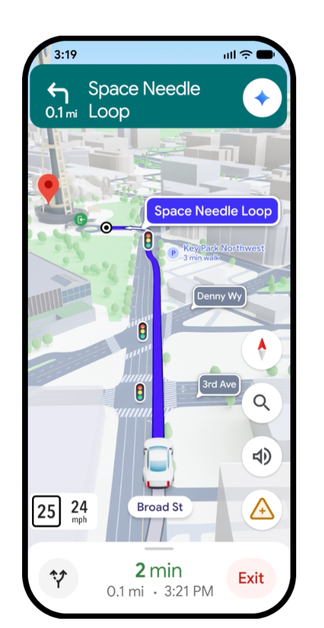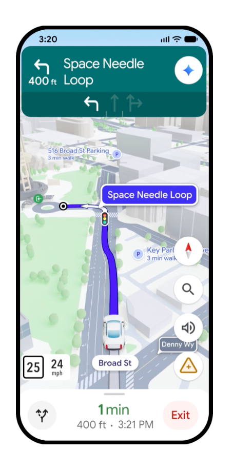 นอกจากฟีเจอร์เสริมอย่าง ‘การสั่งการ/โต้ตอบด้วยเสียง’ แล้ว Google Maps ยังได้อัปเดตระบบนำทางแบบใหม่ที่เรียกว่า Immersive Navigation ที่จะแสดงแผนที่ในรูปแบบ 3D อย่างละเอียด เช่น ความสูงของอาคาร ความสูงของทางยกระดับ/สะพาน และรูปแบบภูมิประเทศ