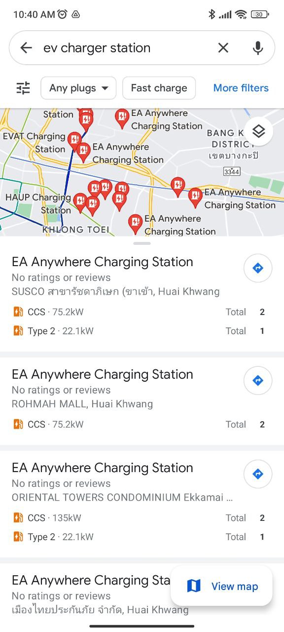 - ไม่มีสัญญาณอินเทอร์เน็ต ไม่สามารถตรวจหาจุดชาร์จรถ (No internet. Can’t load charging stops.)