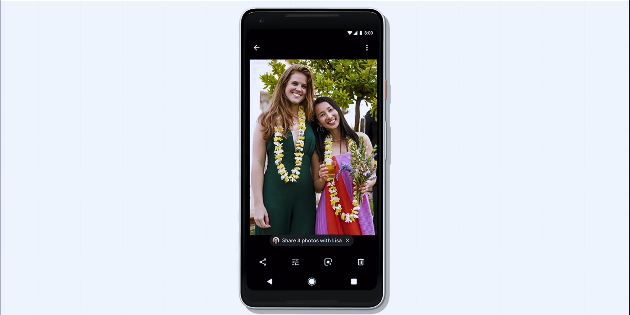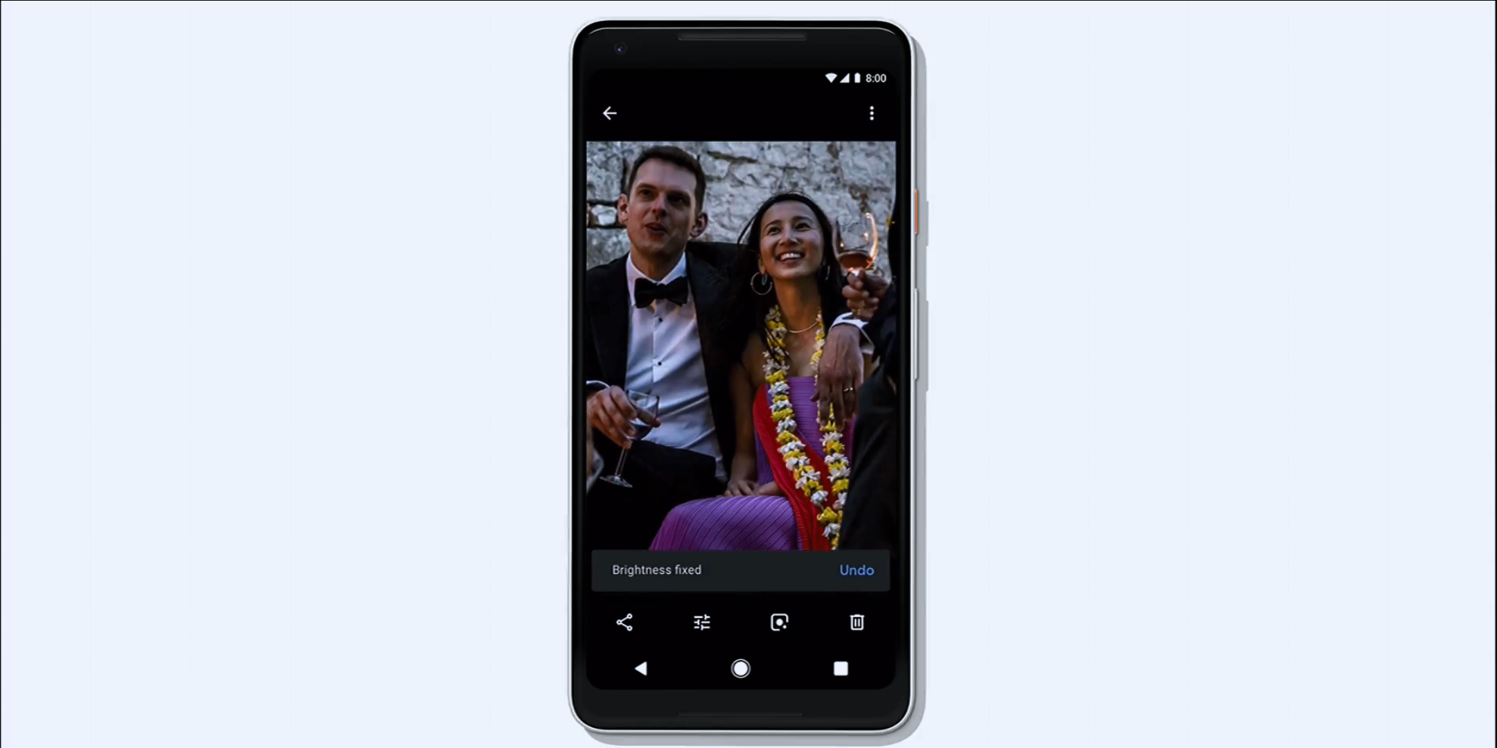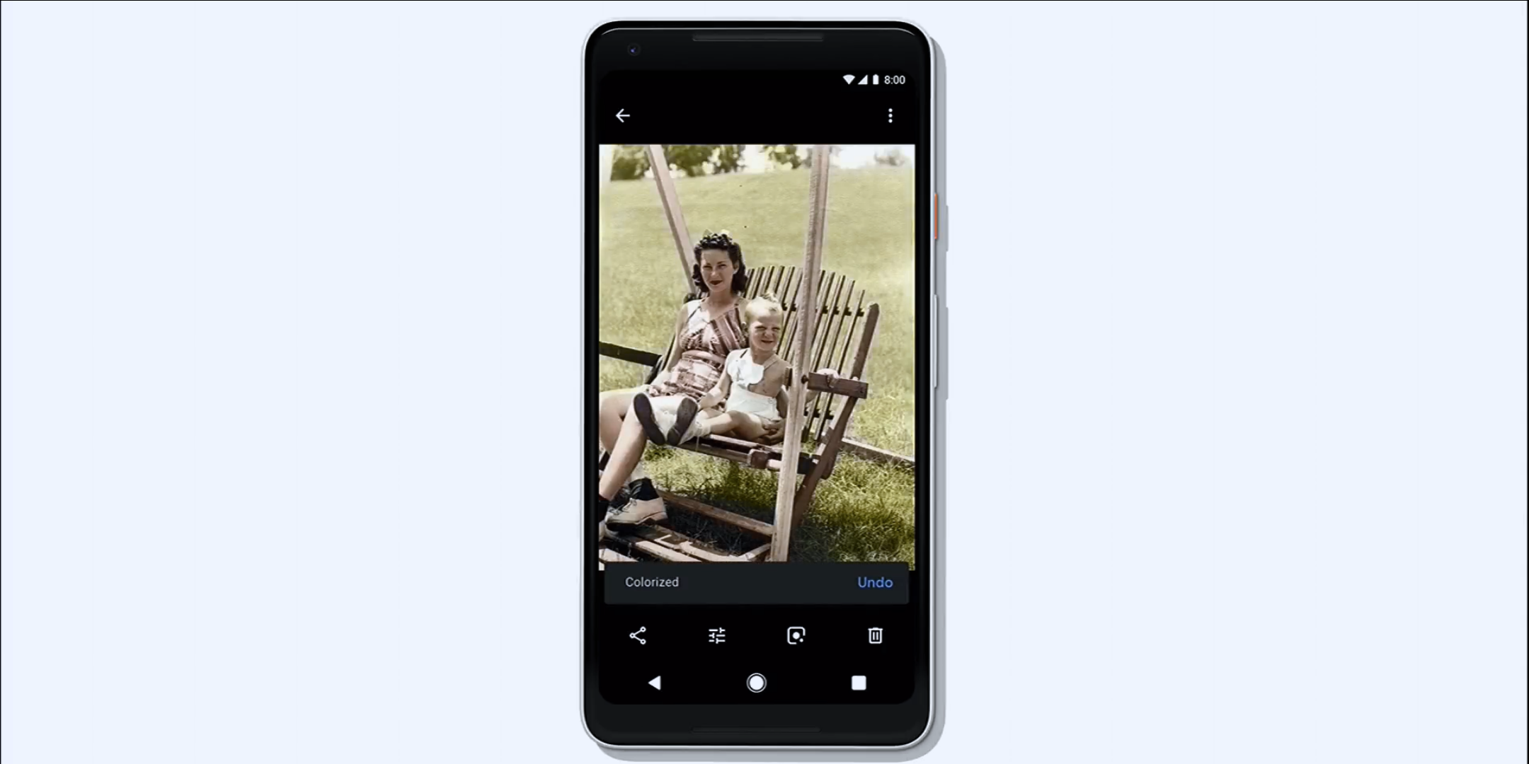 ในแต่ละวันมีคนดูภาพจาก Google Photos มากกว่า 5 พันล้านรูป ทีมงานต้องการที่จะพัฒนาประสบการณ์การใช้งานของดูรูปภาพให้ดียิ่งขึ้นด้วยการแนะนำ Action ที่เราน่าจะอยากทำให้ทันที ไม่ว่าจะเป็นการเลือกภาพอัตโนมัติเพื่อแชร์ให้เพื่อนแต่ละคนที่ไปเที่ยวด้วยกัน ปรับสีแสงให้สวยงาม เปลี่ยนเอกสารให้เหมือนแสกนจากเครื่อง หรือปรับภาพขาวดำในอดีตให้มีสีสัน ทั้งหมดนี้ก็ด้วยพลังแห่ง AI ของ Google