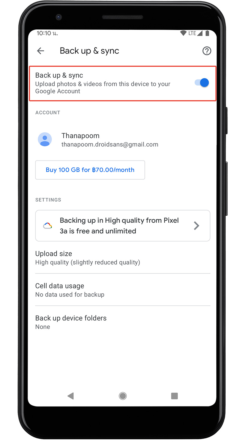 พื้นที่ของ Google account ปกติจะมีติดตัวกันอยู่คนละ 15GB ต่อไปนี้เราอาจต้องใช้งานกันอย่างระมัดระวังนิดหนึ่ง เพราะไม่ใช่แค่ Photos เท่านั้นนะครับ ที่กำลังจะถูกคิดโควต้าพื้นที่ร่วมกัน แต่บริการอื่น ๆ อย่าง Docs, Sheets และ Slides ต่างก็เข้าเงื่อนไขด้วย ดังนั้น การปิดไม่ให้ Photos ซิงก์เพื่อสำรองรูปภาพโดยอัตโนมัติจะช่วยให้ประหยัดพื้นที่ไปพอสมควร