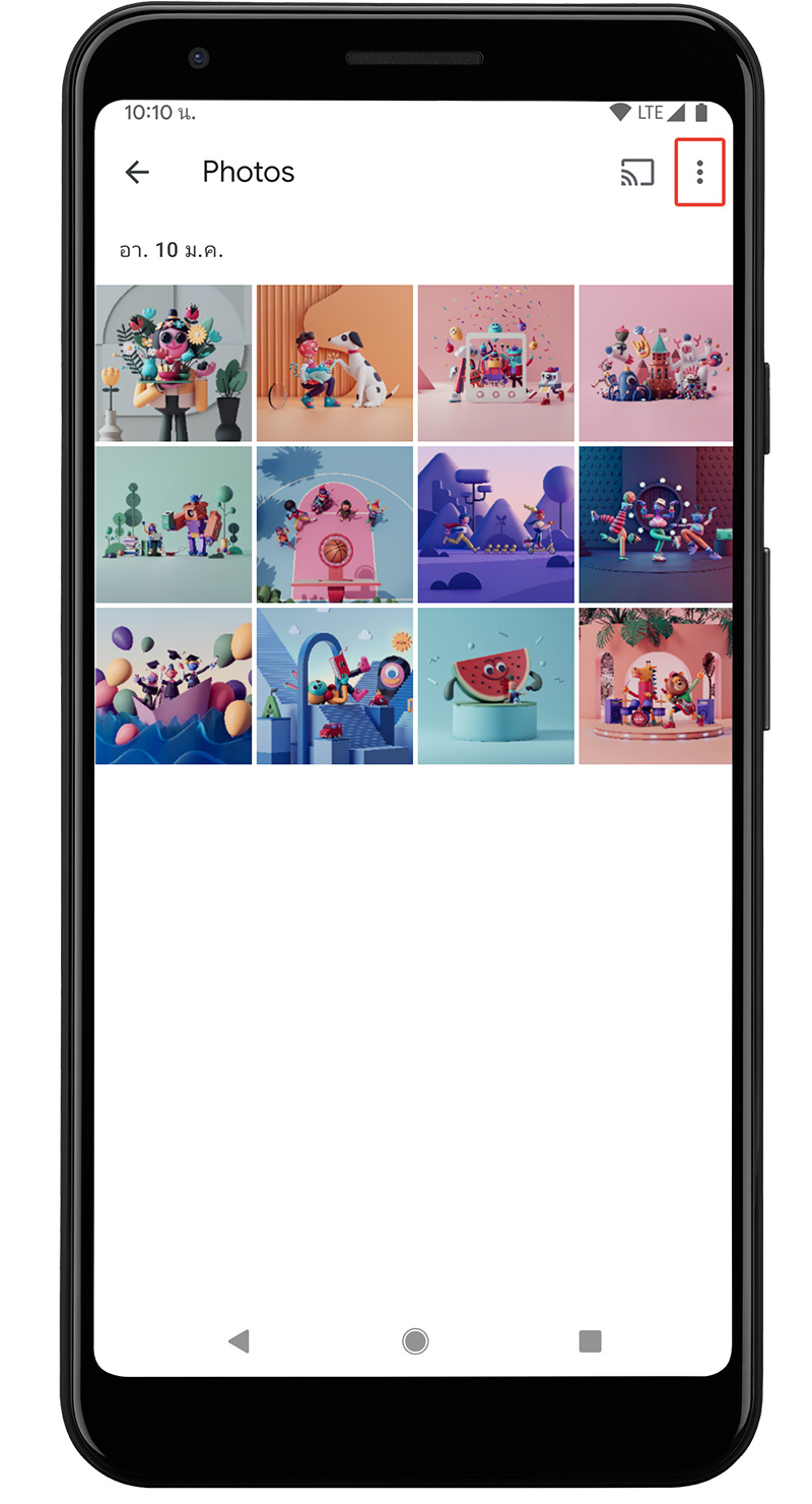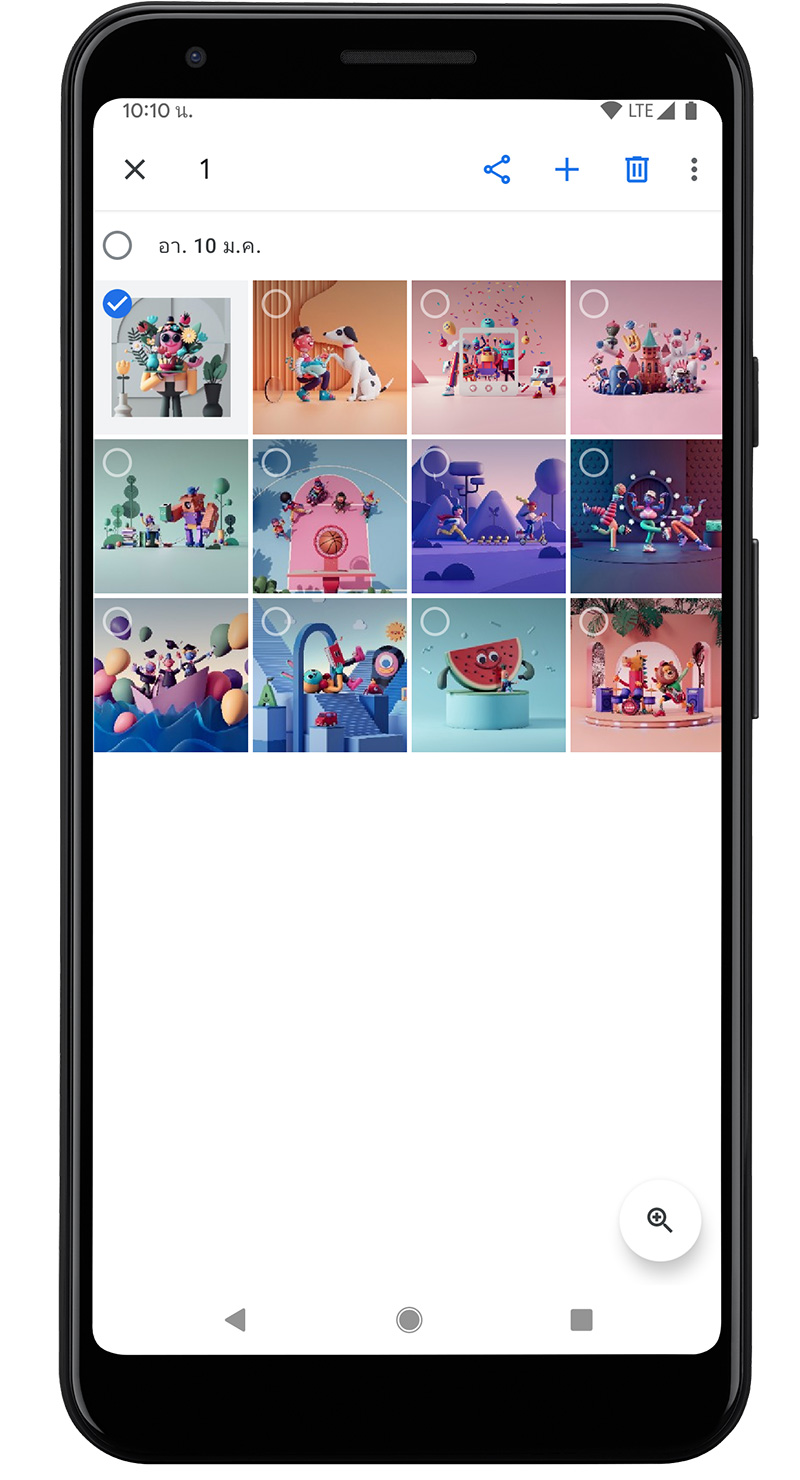 ให้ทำการแตะค้างไปที่รูปภาพจนปรากฏเครื่องหมายติ๊กถูก ตรงนี้สามารถเลือกพร้อมกันครั้งละหลาย ๆ ใบได้ เสร็จแล้วให้กดไปที่ปุ่มเมนูบริเวณมุมขวาบน แล้วเลือก “สำรองข้อมูล” แล้วรอจนกว่าระบบจะอัปโหลดข้อมูลเสร็จเป็นอันจบ ~