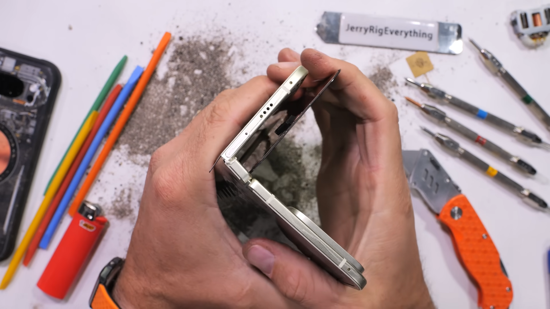 อย่างไรก็ตามนอกเหนือจากการทดสอบนี้แล้ว ตัวของ Zack Nelson ก็ยังนำ Google Pixel 10 Pro Fold มาทดสอบมาตรฐานการทนฝุ่น IP68 ก่อนที่จะเจอเหตุการณ์ดังกล่าว ด้วยการนำฝุ่นมาโรยลงบนบริเวณบานพับของตัวเครื่องแล้วพับ-กางเครื่อง ซึ่งผลที่ได้ก็คือ เสียงบดกรอบๆ จากฝุ่นที่ติดอยู่ภายในกลไกของบานพับ จนเจ้าตัวต้องเอ่ยปากแซวว่า “นี่มันไม่เหมือนกับที่โฆษณาเอาไว้เลยนี่”