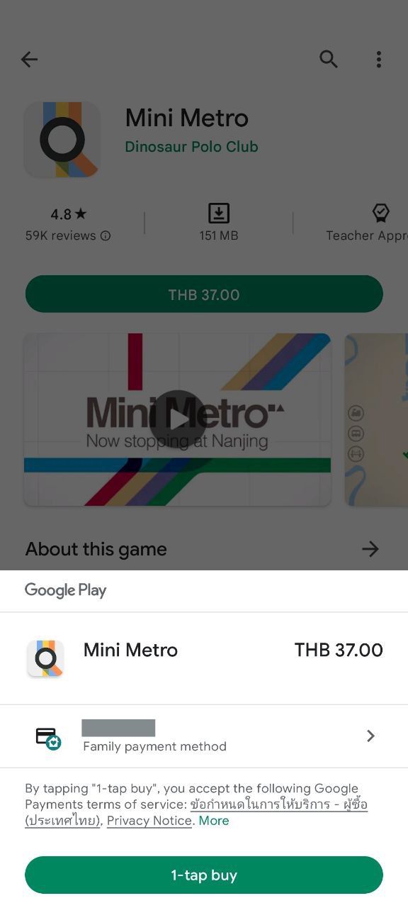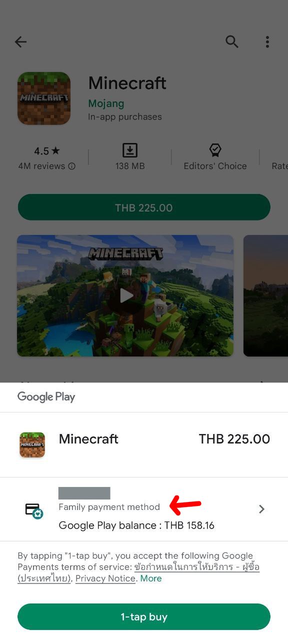 ถ้าเกิดเราอยากซื้อของใหม่เข้ามาใน Library เวลาซื้อให้มองหาโลโก้รูปบ้าน ถ้ามีแปลว่าใส่เข้ามาใน Library ได้ครับ แต่เวลาซื้อต้องอย่าลืมกดเปลี่ยนวิธีชำระเงินให้เป็นอันที่เราตั้งไว้เป็น Family Payment ก่อนกดซื้อด้วยนะ หลังกดซื้อถ้าเราเคยตั้งให้เพิ่มเข้าแบบอัตโนมัติแล้ว ก็ไม่ต้องทำอะไรอีกครับ ตัวแอปจะเข้ามาใน Family library เอง