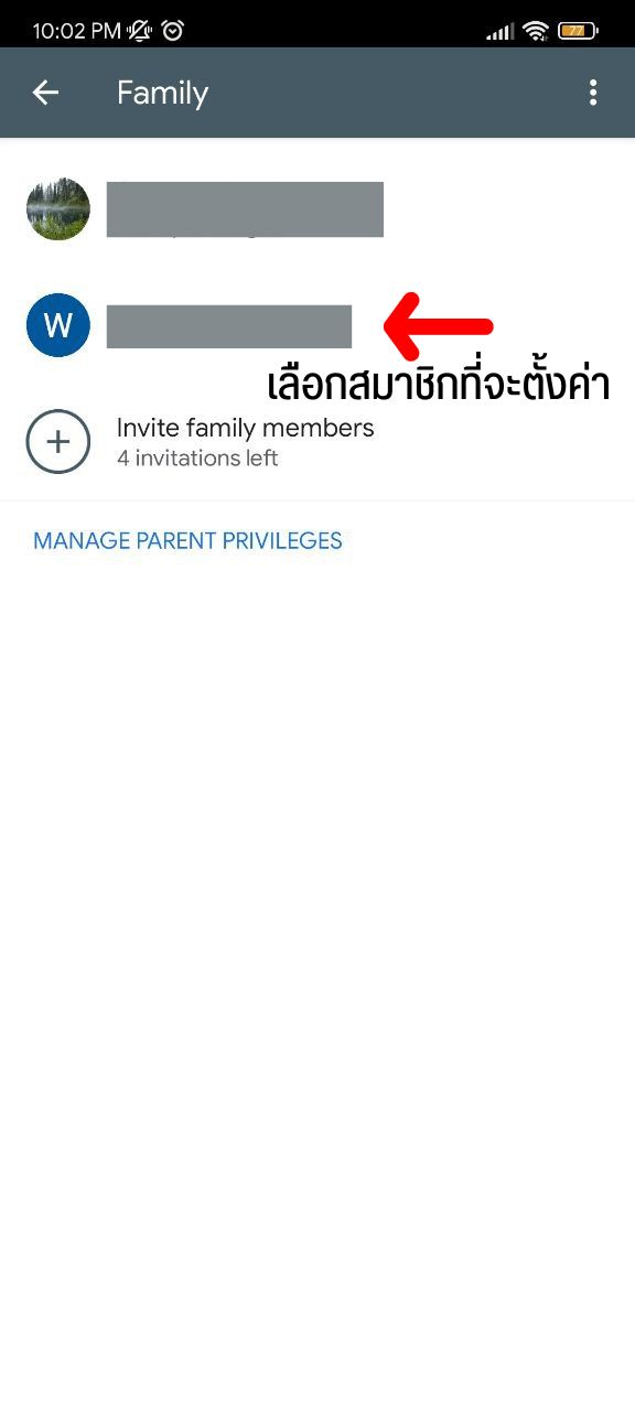 ซึ่งมีวิธีโดยการกดไปที่ Setting เหมือนเดิม แล้วเลือก Manage family members > เลือกสมาชิกที่เราจะตั้งค่า