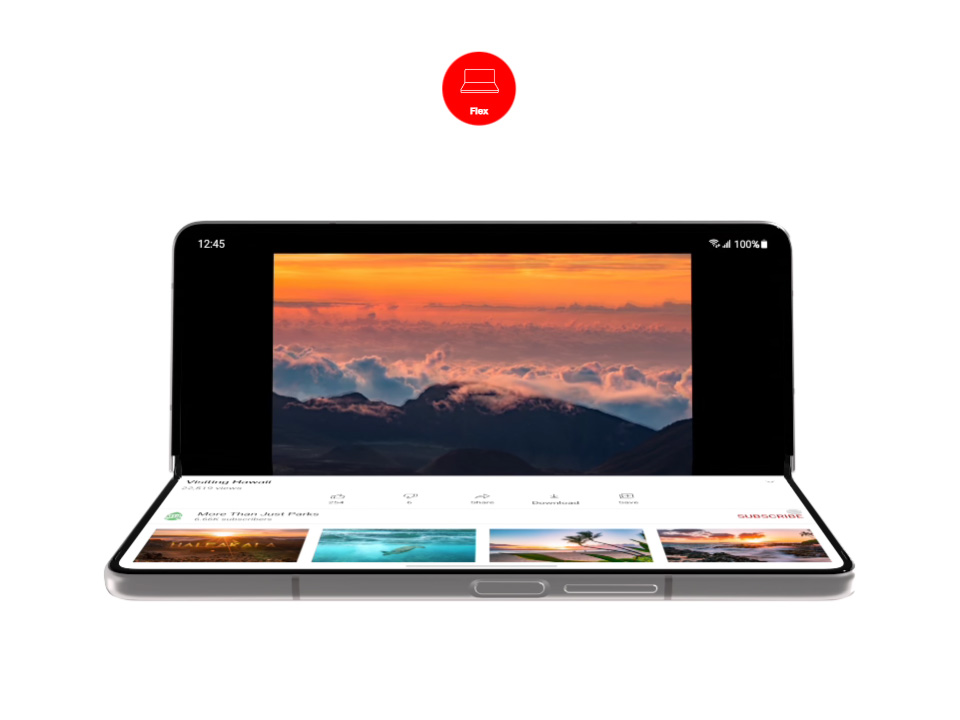 - Watch – รับชม YouTube ได้อย่างเต็มตาบนหน้าจอขนาดใหญ่ในโหมด Fold และแบ่งหน้าจอออกเป็นสองส่วนเพื่อทำงานอย่างอื่นไปด้วยขณะดูวิดีโอด้วยโหมด Flex