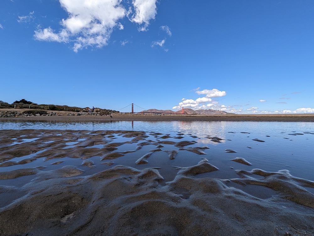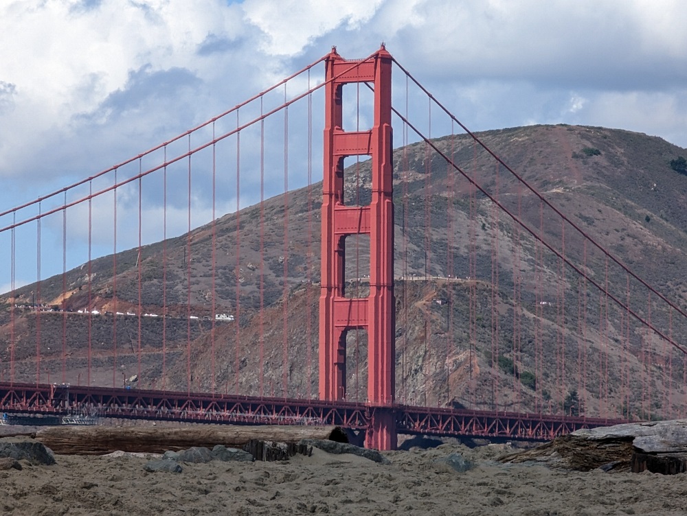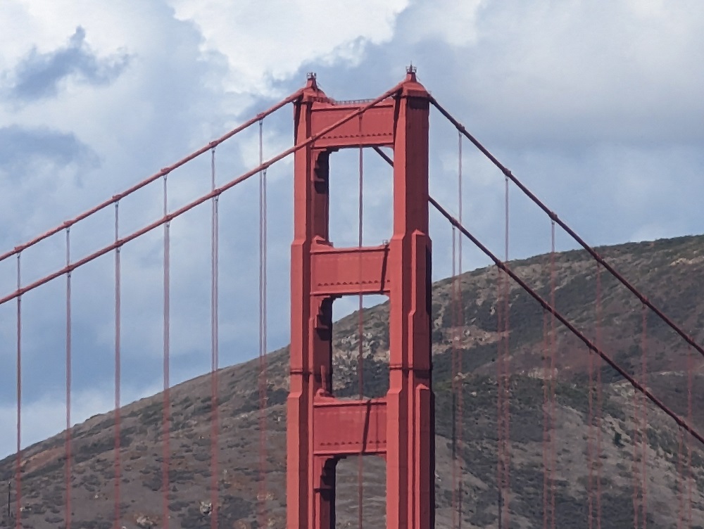 อีกภาพเป็นมุมกว้างของสะพานโกลเด้นเกตที่ซูมเข้าไปสุด ๆ จนนับเส้นเคเบิลที่ยึดสะพานเอาไว้ได้เลย