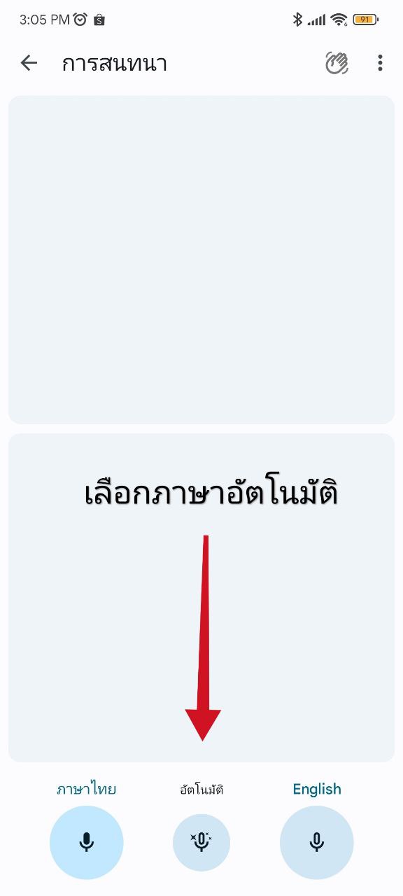 สำหรับใครที่กำลังฟังบทพูดสั้น ๆ ไม่ต้องการให้แอปส่งเสียงบทแปลออกมาเหมือนในโหมดการสนทนา มีวิธีการใช้งานแอปตามนี้