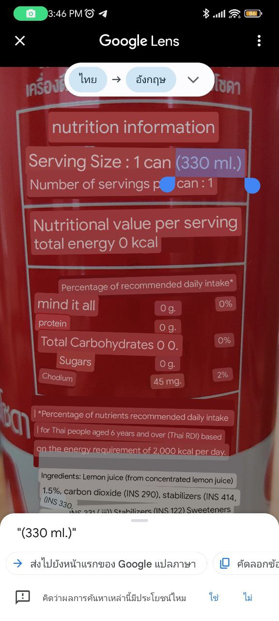 หันกล้องไปที่สิ่งของที่ต้องการ แล้วกดถ่าย > เลือกตัวหนังสือเพื่อก็อปปี้ หรือนำไปค้นหาต่อได้