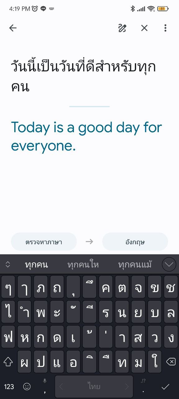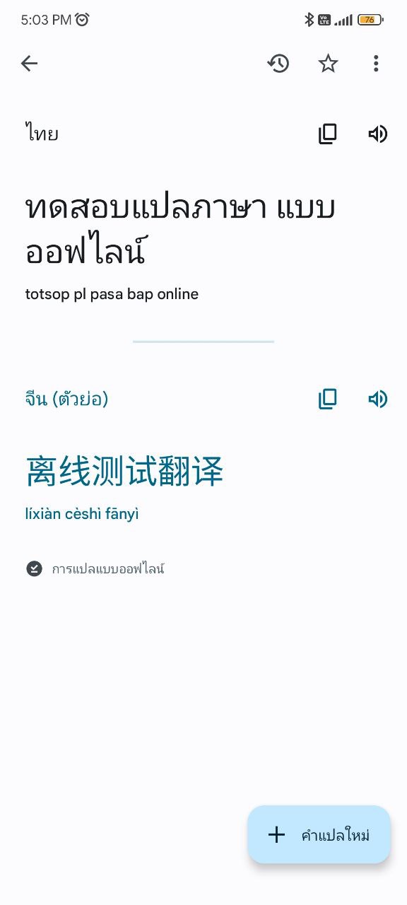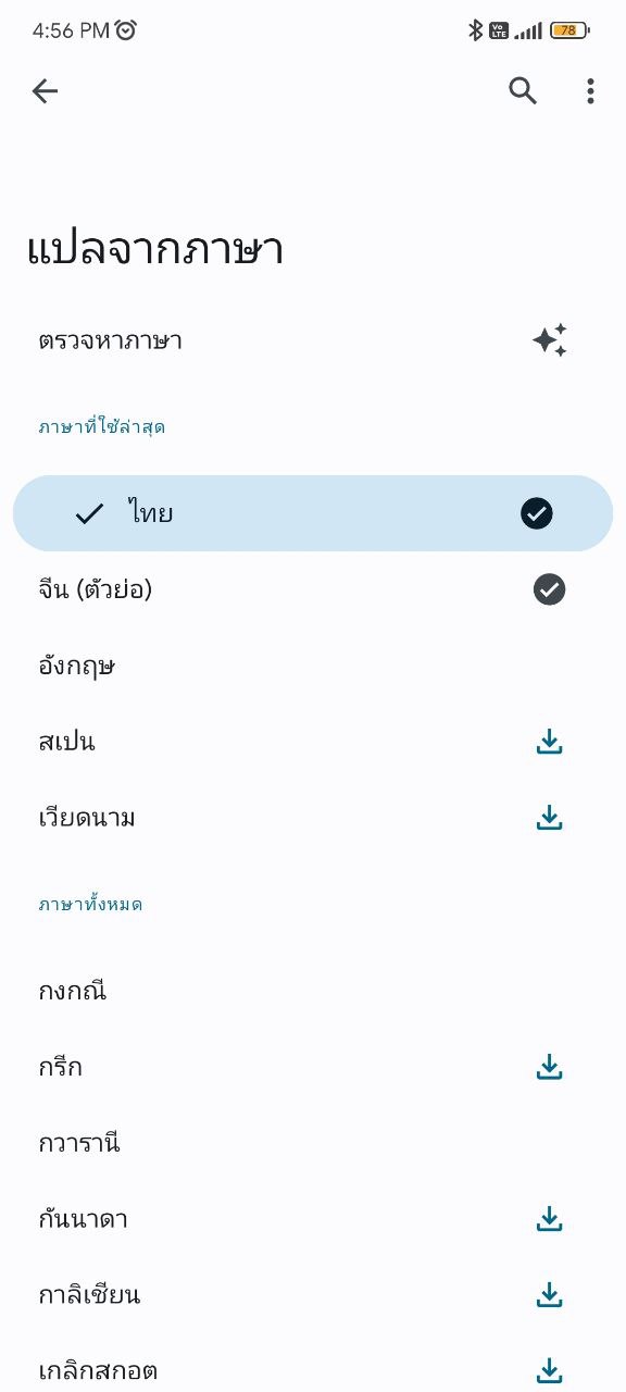 ดาวน์โหลดเสร็จแล้วจะมีเครื่องหมายติ๊กถูกตามภาพ คราวนี้เมื่อเราไม่มีสัญญาณอินเทอร์เน็ต ก็จะยังคงใช้ฟีเจอร์แปลภาษาได้อยู่ ทั้งในหมวดแปลจากตัวหนังสือ และแปลจากภาพ แต่จะไม่สามารถแปลจากการฟังเสียงได้ครับ