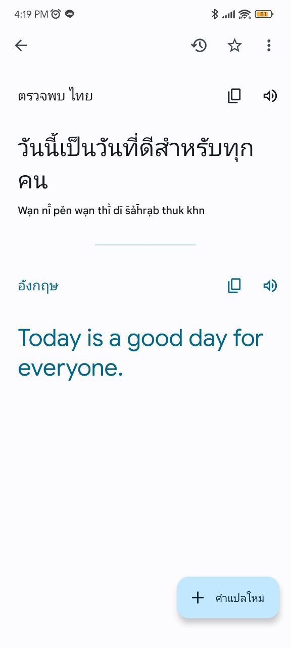 พอพูดเสร็จแล้ว ตัวแอปก็จะหยุดฟังเสียงแล้วก็แสดงหน้าการแปล ที่มีทั้งภาษาต้นฉบับ และบทแปลออกมา