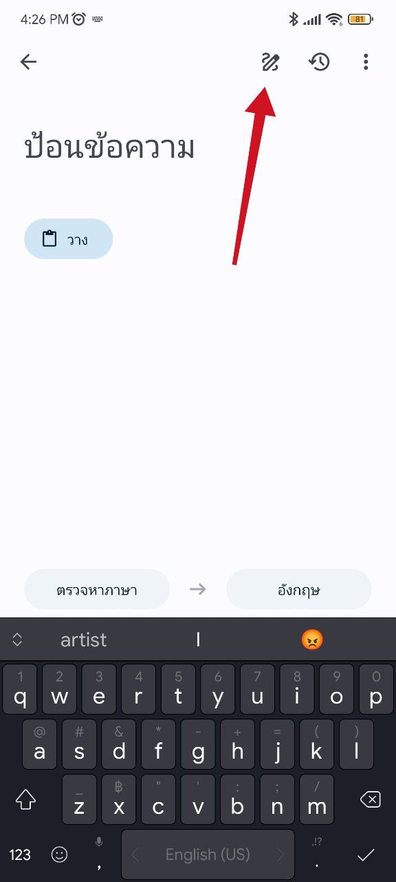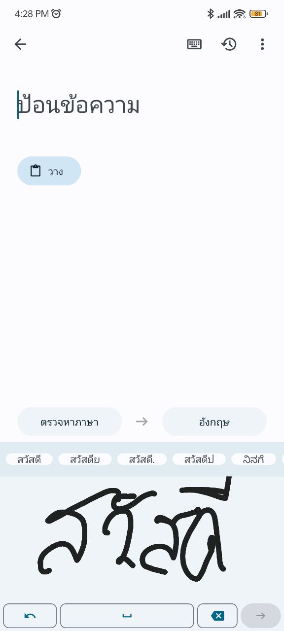 ถ้าไม่อยากพิมพ์ตัวหนังสือ ก็สามารถเลือกเขียนได้ เหมาะไว้ใช้กับอุปกรณ์ที่มีปากกา Stylus แต่ใช้นิ้วเขียนก็ทำได้ไม่มีปัญหา มีวิธีโดยการกดปุ่มรูปดินสอ ด้านขวาบน > ขีดเขียนตรงช่องด้านล่างของจอ > หยุดเขียนแล้วก็จะออกมาเป็นคำ พร้อมคำแปลตามภาษาที่กำหนด