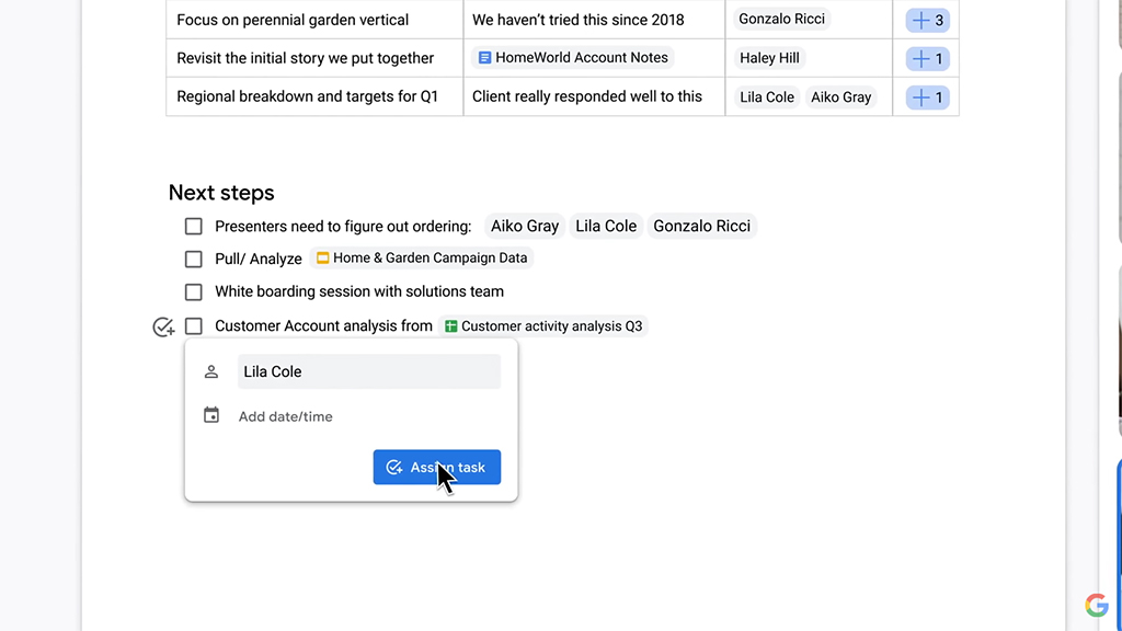 เราทุกคนต่างทราบกันดีว่า Google มีชุดเครื่องมือและบริการสำหรับการทำงานเจ๋ง ๆ อยู่มากมาย แต่บริษัทฯ ต้องการทำให้แต่ละแอปบูรณาการและโต้ตอบได้ระหว่างกันได้มากขึ้น จึงเป็นที่มาของแนวคิด Smart Canvas ซึ่งจะสามารถช่วยให้ทำงานเป็นทีมได้อย่างยืดหยุ่นและมีประสิทธิภาพ แม้จะอยู่กันคนละสถานที่ก็ตาม สอดคล้องกับวิถีชีวิตยุคใหม่ที่หลายคนทำงานจากที่บ้าน